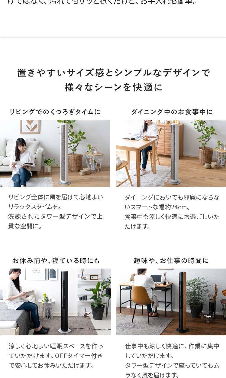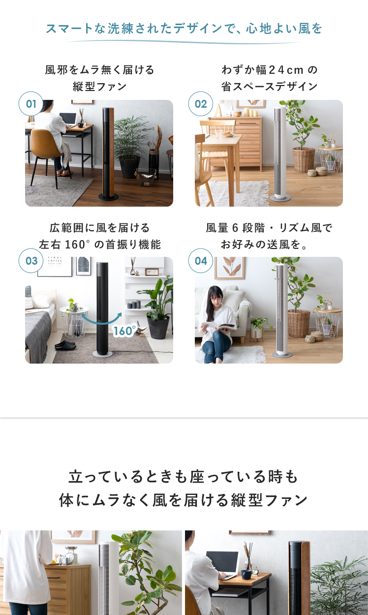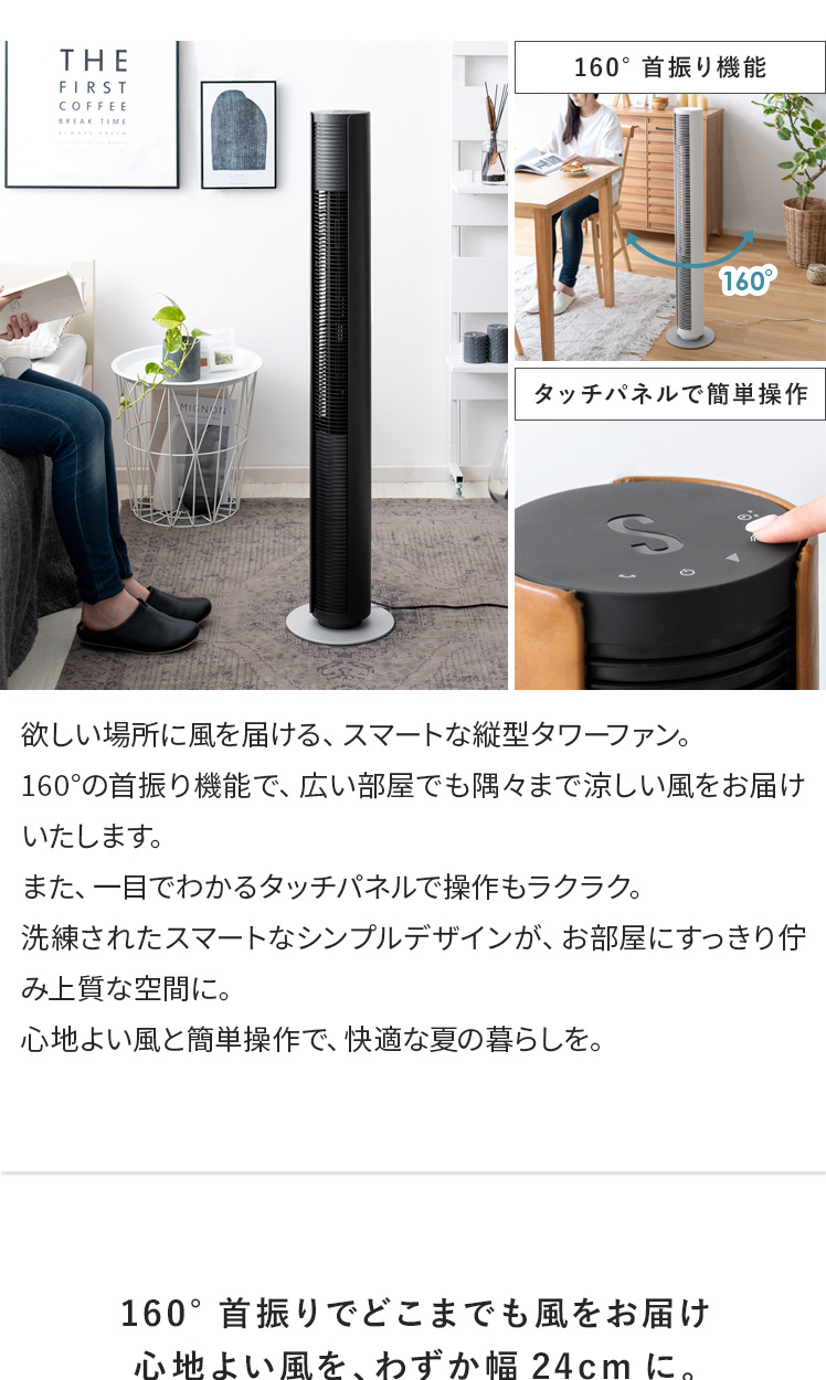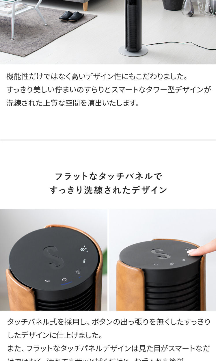 Stadler Form〔スタドラフォーム〕 タワーファン/欲しい場所に風を届ける、すらりとスマートな縦型タワーファン。160°の首振り機能で、広い部屋でも隅々まで涼しい風をお届けいたします。また、一目でわかるタッチパネルで操作もラクラク。洗練されたスマートなシンプルデザインがお部屋にすっきり佇み上質な空間に。快適性とデザイン性を兼ね備えたタワーファンで、快適な夏の暮らしを。