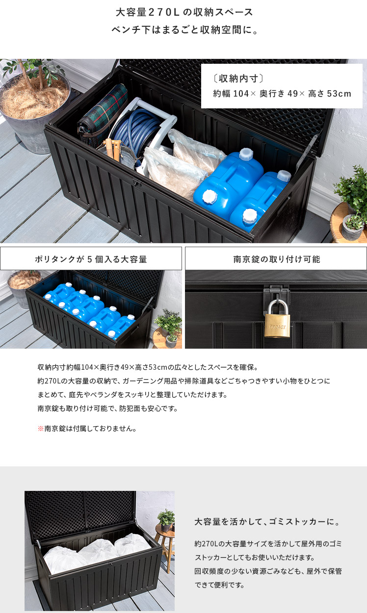 ポリタンク 大容量 収納ベンチ 収納庫 ストッカー 物入れ