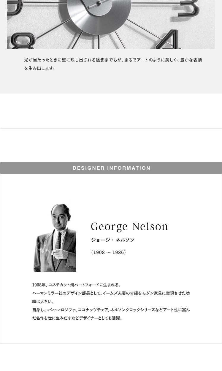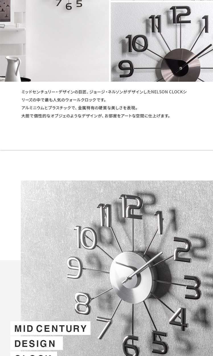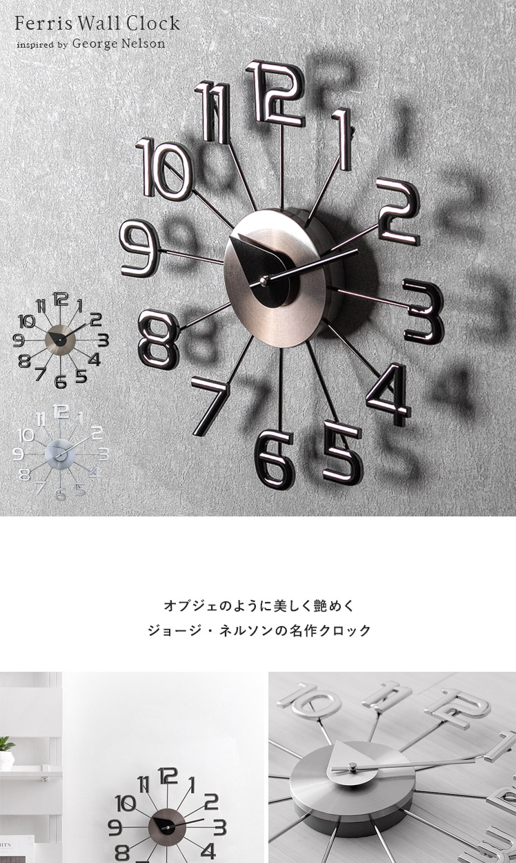 Ferris Wall Clock 〔フェリス・ウォール・クロック〕/ミッドセンチュリー・デザインの巨匠、ジョージ・ネルソンがデザインしたNELSON CLOCKシリーズの中で最も人気のウォールクロックです。アルミニウムとプラスチックで、金属特有の硬質な美しさを表現。大胆で個性的なオブジェのようなデザインが、お部屋をアートな空間に仕上げます。