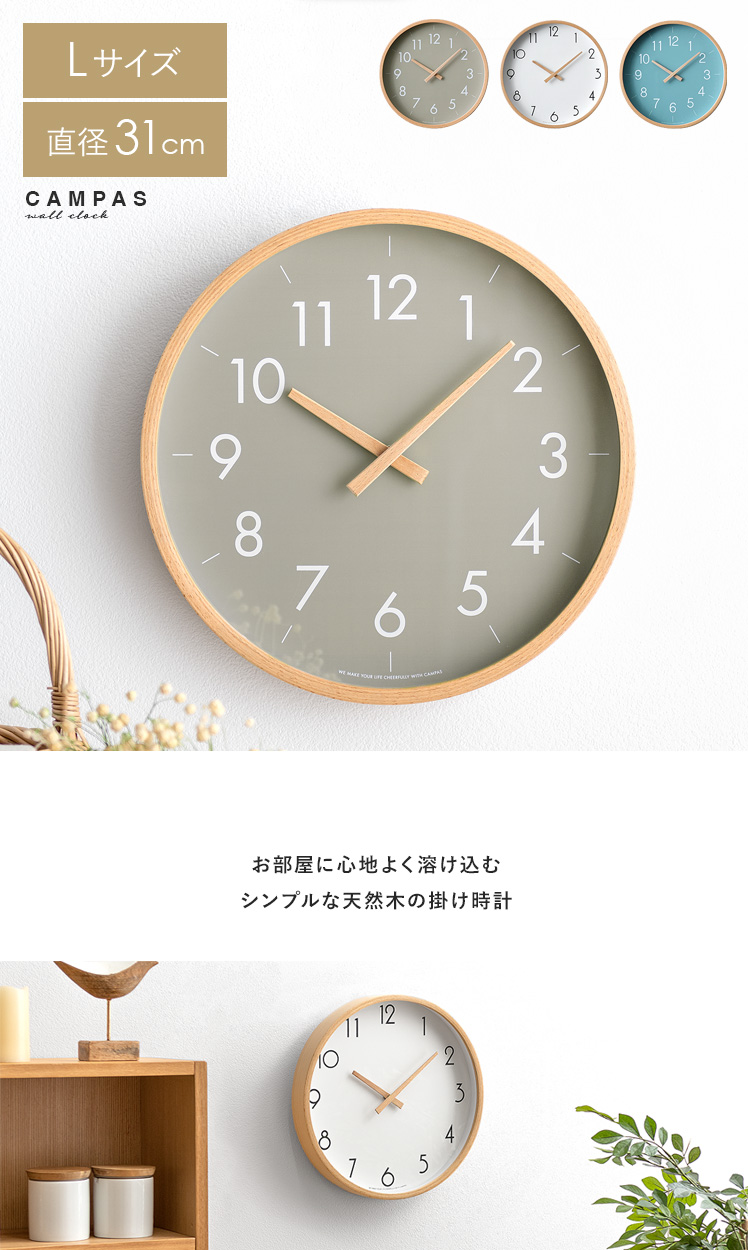 ウォールクロックCAMPAS〔キャンパス〕Lサイズ/天然木ビーチ材の曲木を使用したウォールクロック。針にも天然木を使用した柔らかな印象のデザインで、優しい温もりを感じるお部屋をお作りいただけます。さらに、シンプルな文字盤に大きな数字が、離れていても時間を読み取りやすい設計に。北欧やナチュラルコーデのお部屋にそっと溶け込み、温かな彩りを添えながら、時を刻みます。