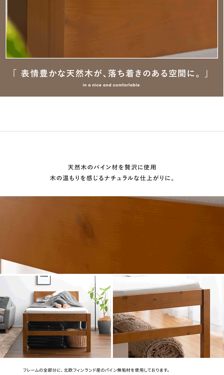 ベッドフレーム 木製 北欧 レトロ シンプル おしゃれ ブラウン