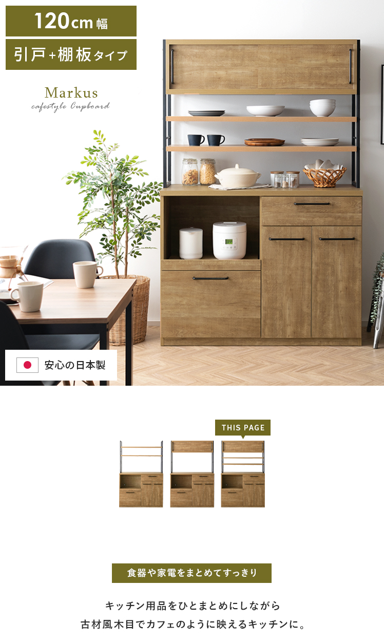 [幅120] 食器棚 Markus〔マルクス〕 引戸+棚板タイプ