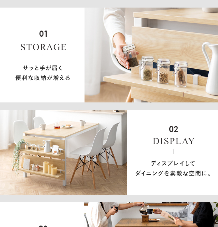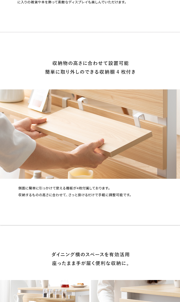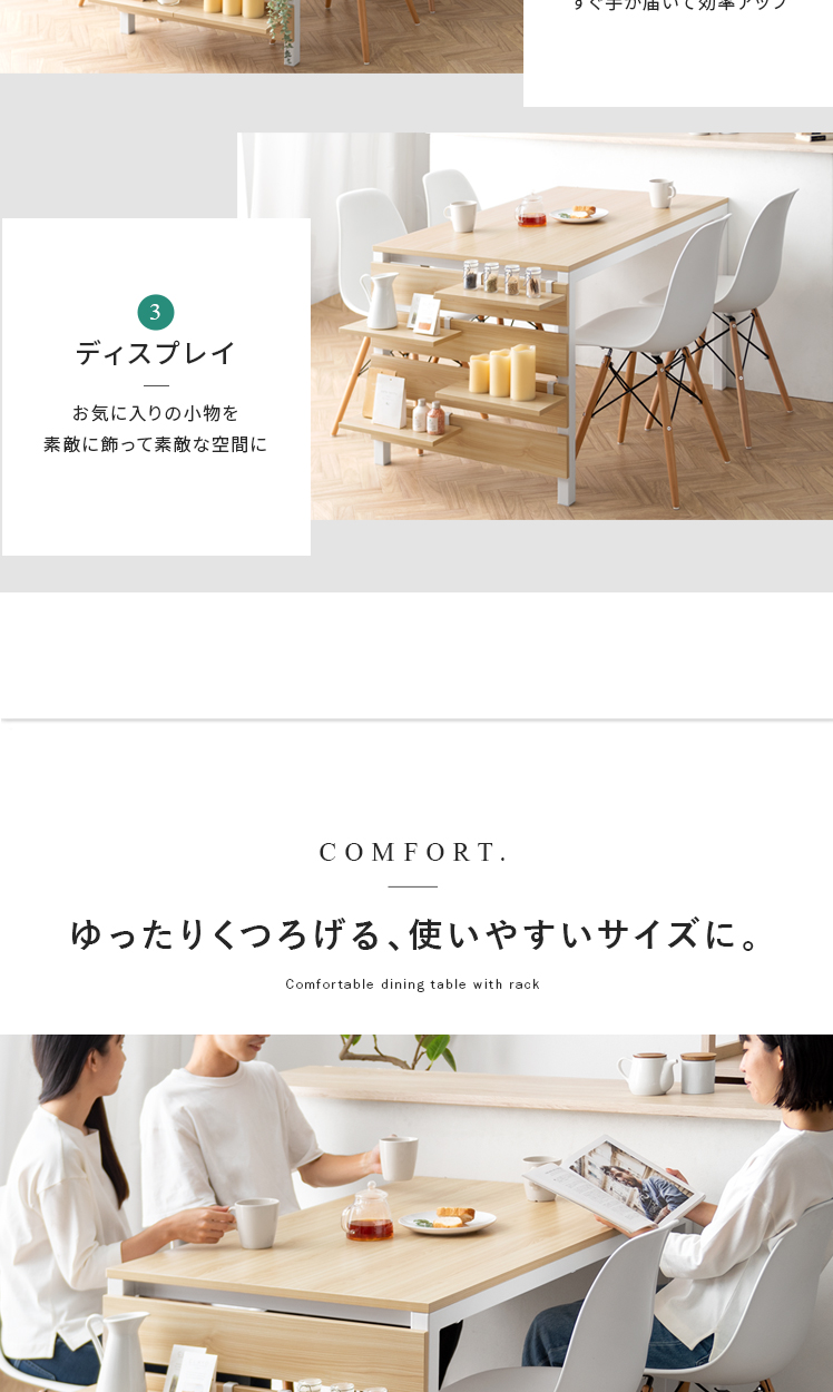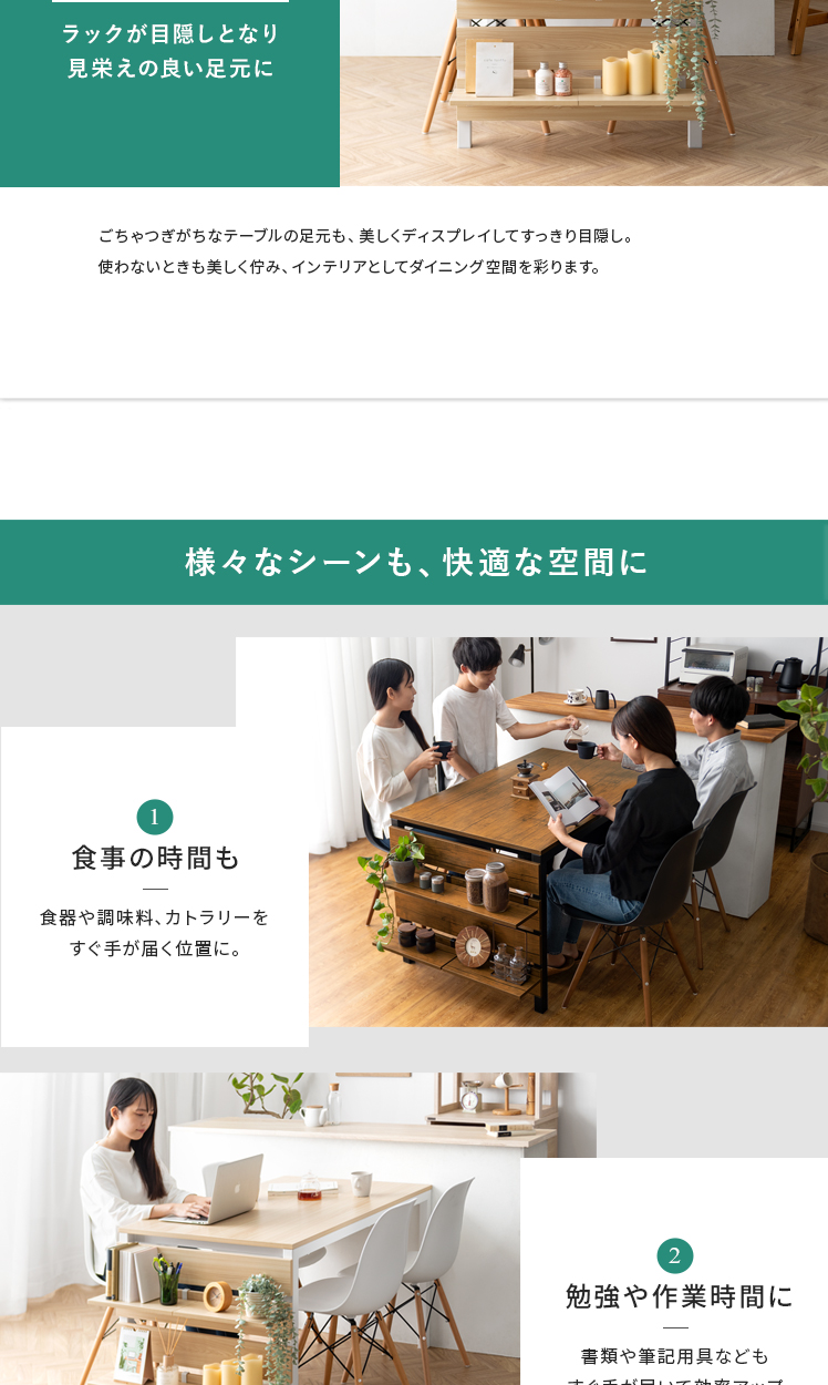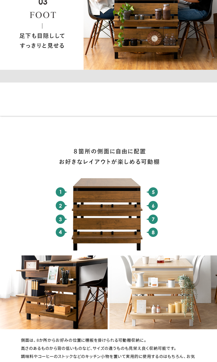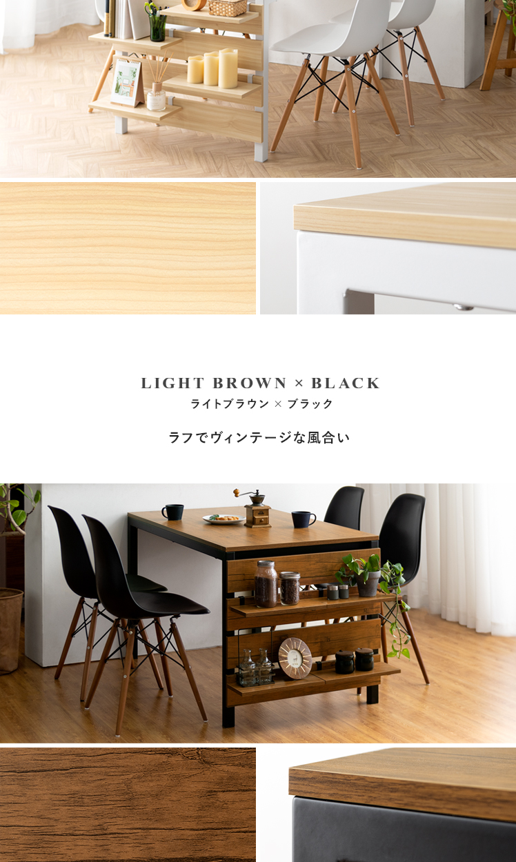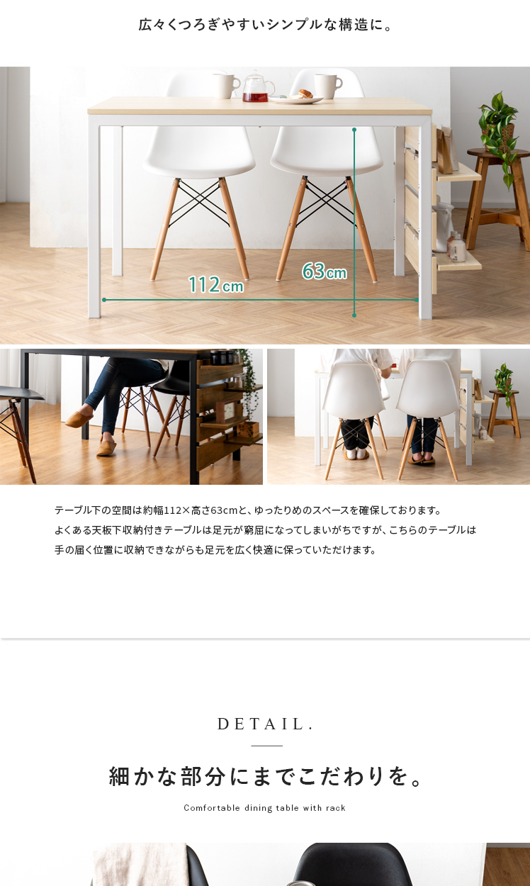 ラック付きダイニングテーブル Diana〔ディアナ〕 テーブル単体販売/収納しながら、空間を飾る可動棚式のラック付きの4人掛けダイニングテーブル“Diana(ディアナ)”お食事やデスク作業中にサッと手が届く便利な収納や、食卓をおしゃれ見せるディスプレイ、足下の目隠しとしても。シンプルで機能的なテーブルで、暮らしを彩り、快適に。