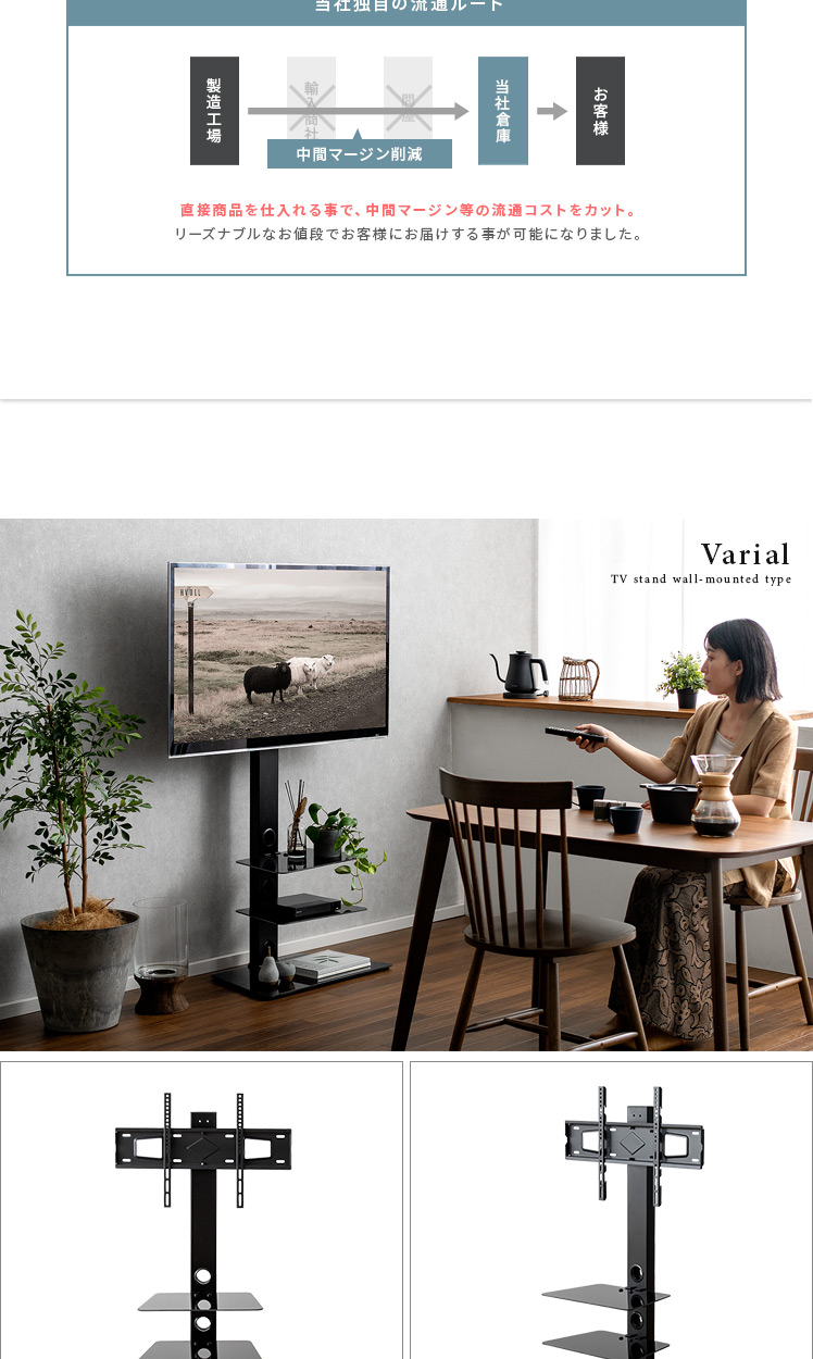 [幅66] 壁寄せテレビスタンド Varial(バリアル) 3段棚タイプ
