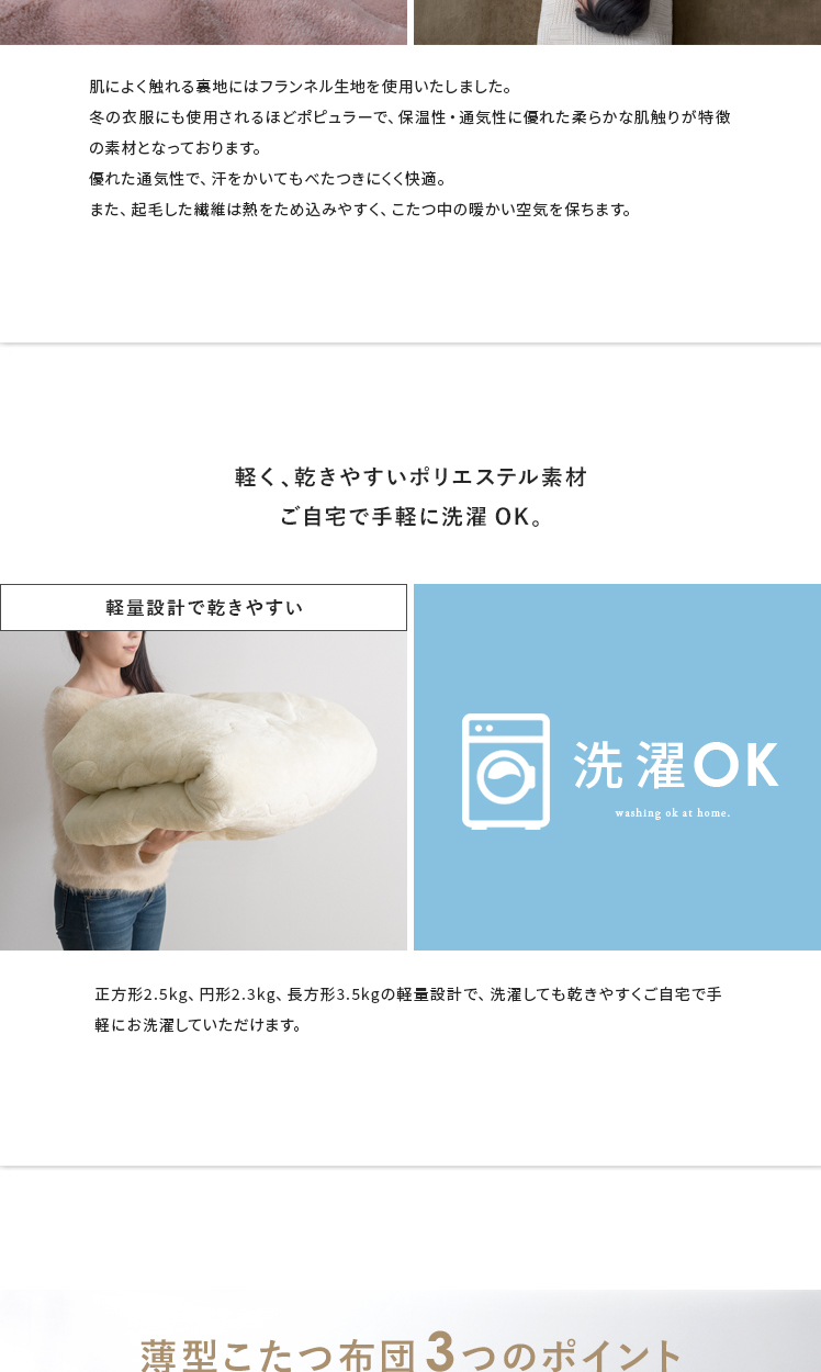 洗える 省スペース 薄手 暖かい シンプル モダン