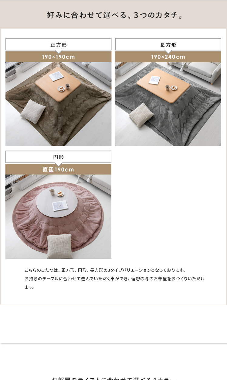 関連カテゴリ: こたつ > こたつ布団 > 正方形 こたつ布団 | こたつ > こたつ布団 > 円形・丸形 こたつ布団 | こたつ > こたつ布団 > 薄掛け・薄型 こたつ布団 | こたつ > こたつ布団 > 洗える こたつ布団