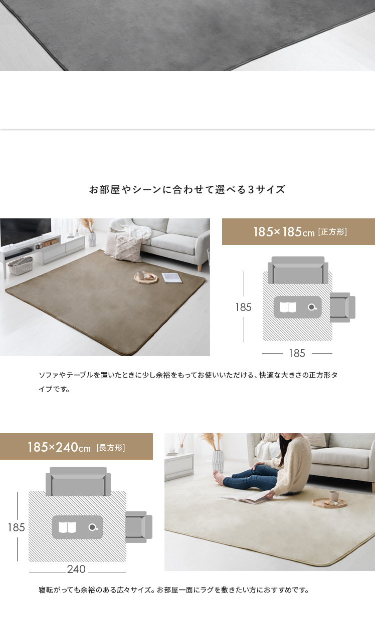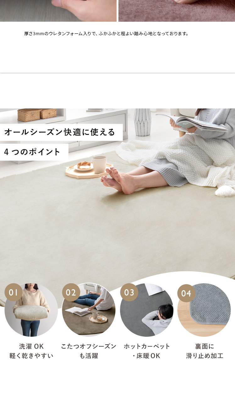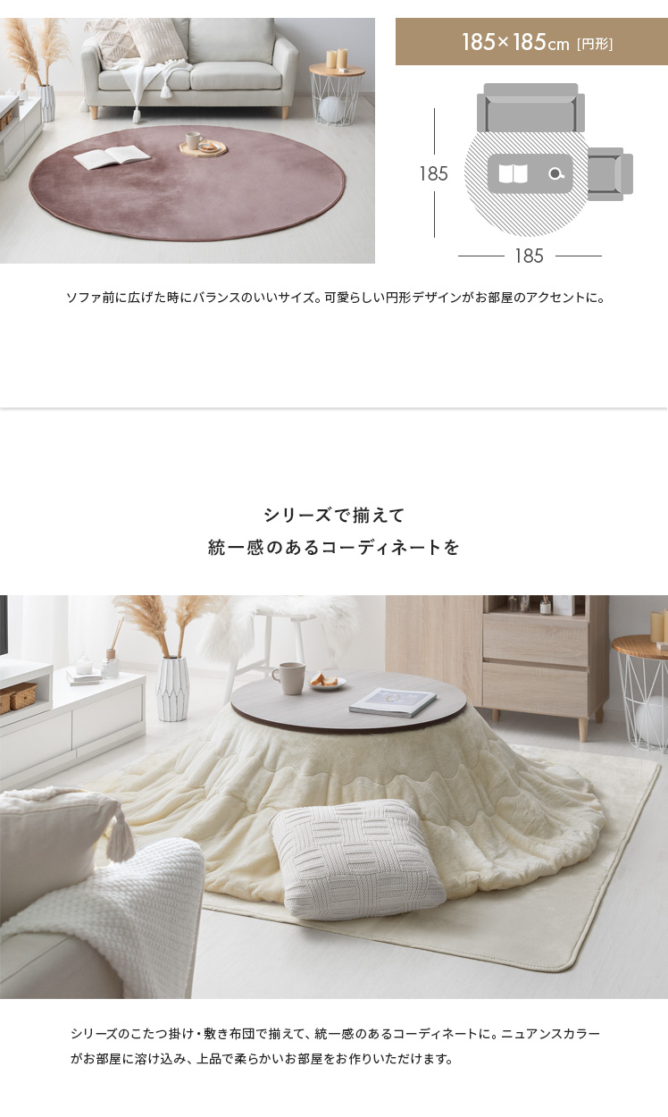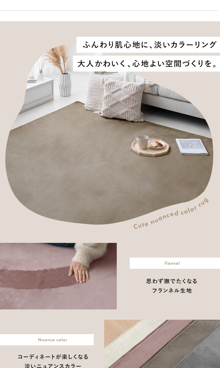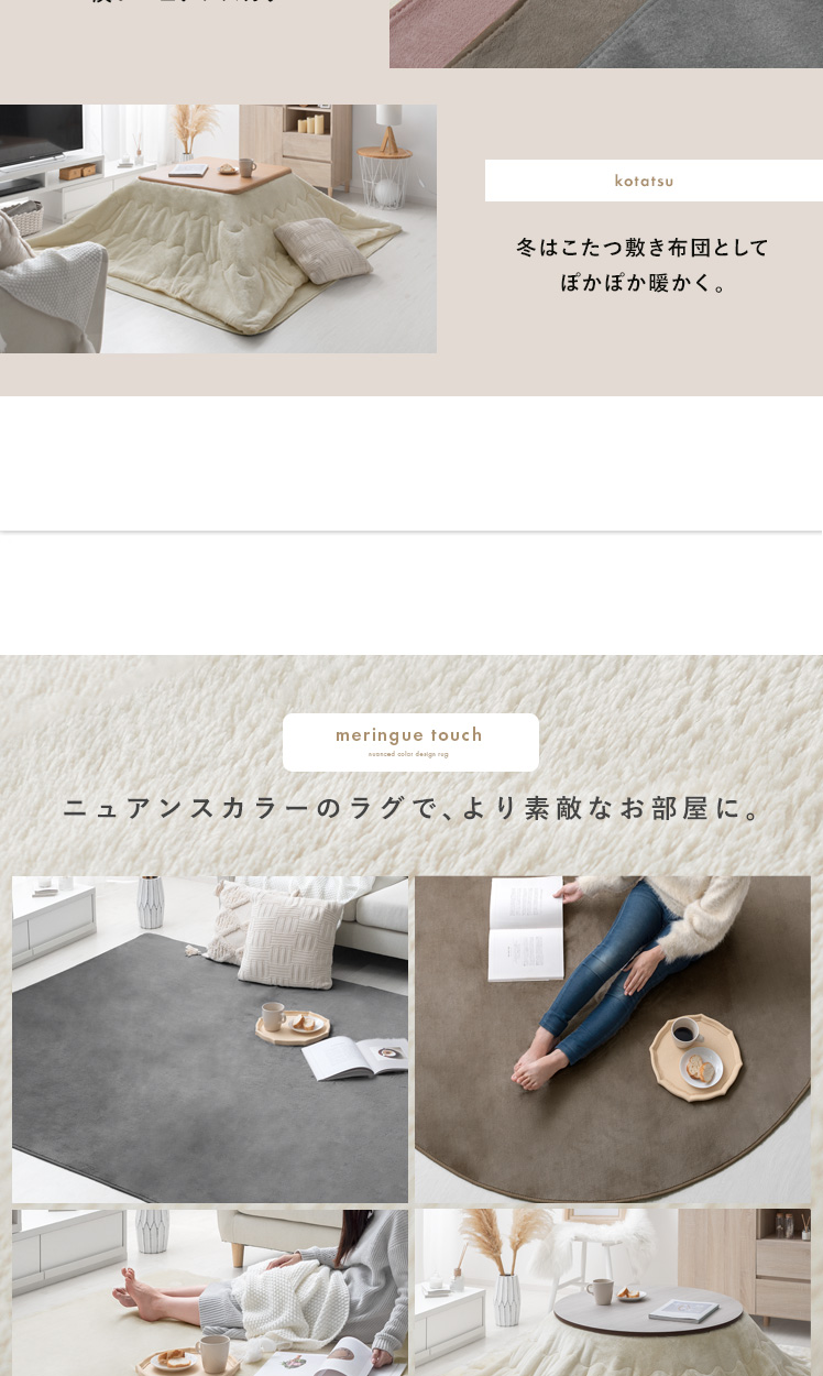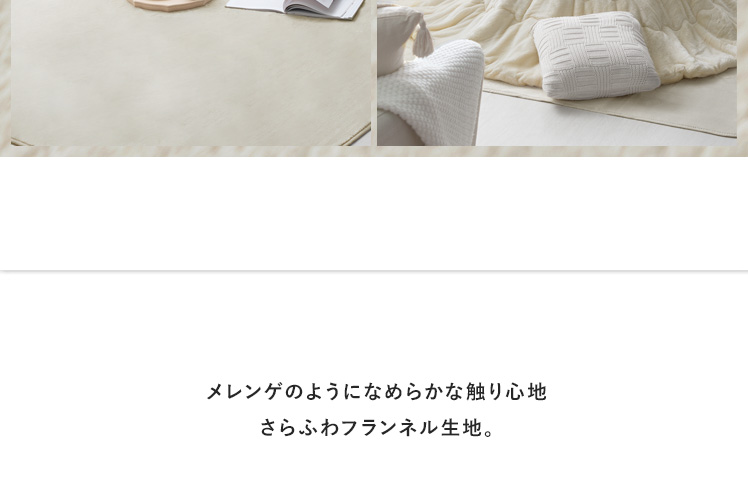 ラグ・こたつ敷き布団メレンゲタッチ 長方形 185x240cm/まるでメレンゲのようなふんわり肌心地のフランネル生地と淡いニュアンスカラーが冬の素敵なお部屋を作る、ラグ・こたつ敷き布団“メレンゲタッチ”表地は短毛のフランネルを使用し、中材は厚さ3mmのウレタンを使用。贅沢な触り心地と程よいクッション性で快適にお過ごしいただけます。淡いニュアンスカラーの大人かわいいデザインと、ふんわり気持ちいい肌触りで至福のくつろぎを。