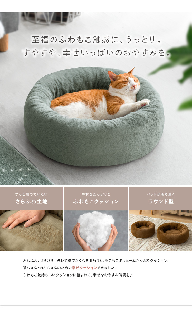 猫用ベッド ペットクッション ラウンド型 洗える かわいい おしゃれ ふわふわ オールシーズン 夏 冬