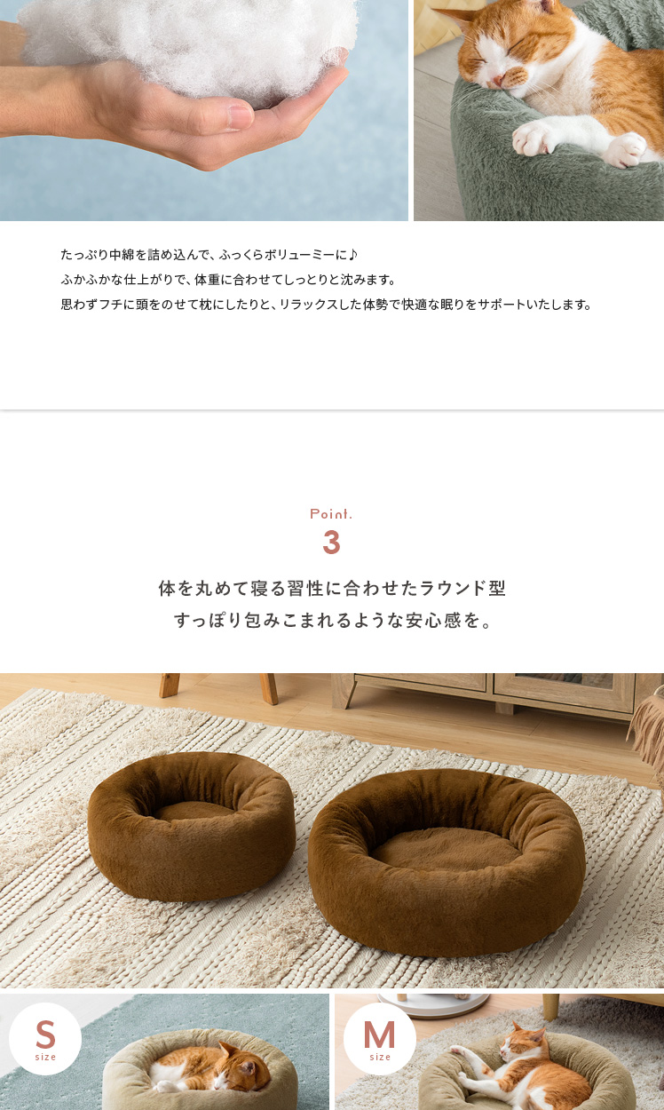 犬・猫兼用ふわもこペットベッド mocoron〔モコロン〕 Sサイズ/ふわふわ、さらさら。思わず撫でたくなる肌触りと、もこもこボリュームたっぷりクッション。猫ちゃん・わんちゃんのための幸せクッションできました。ふわもこ気持ちいいクッションに包まれて、幸せなおやすみ時間を♪