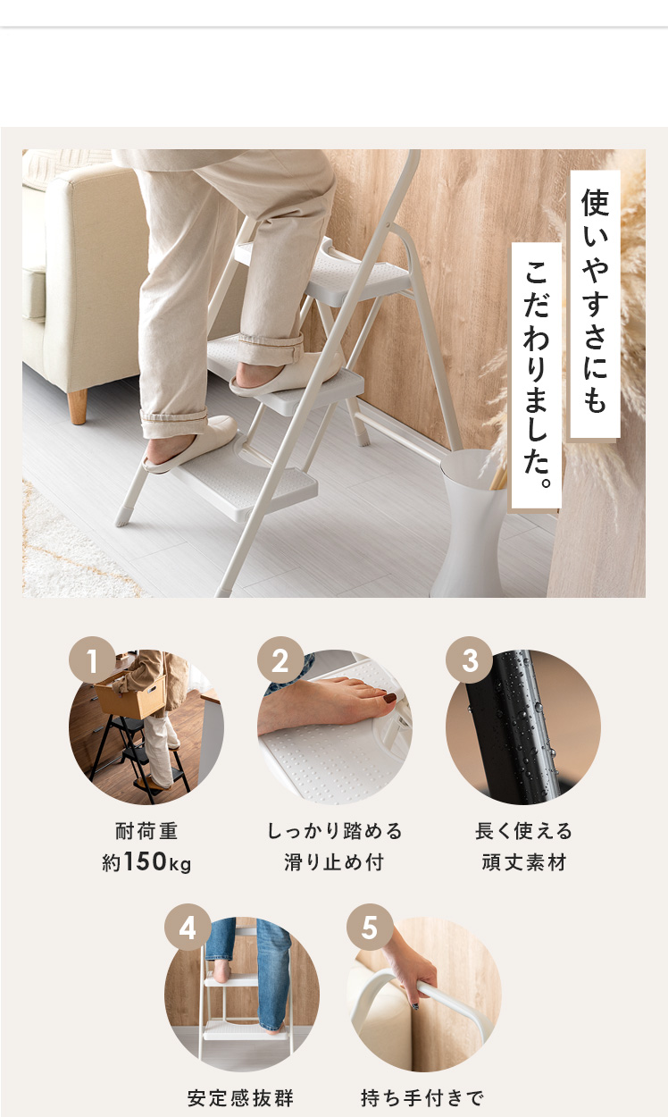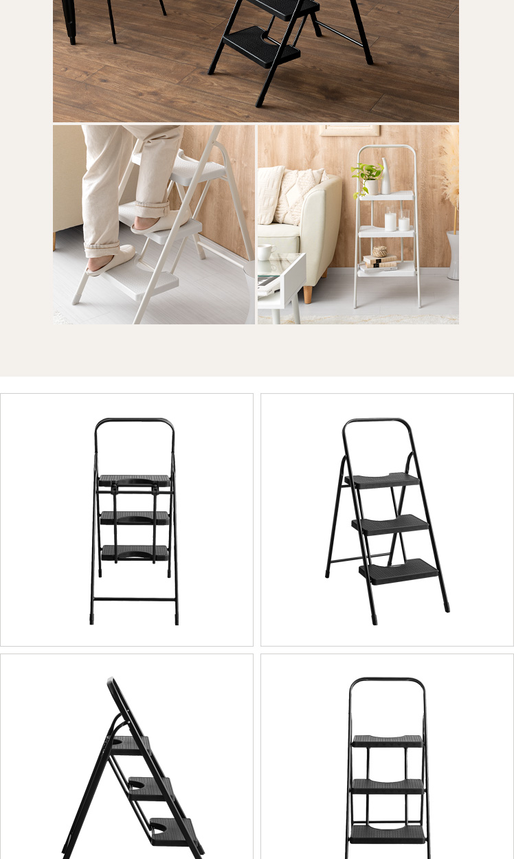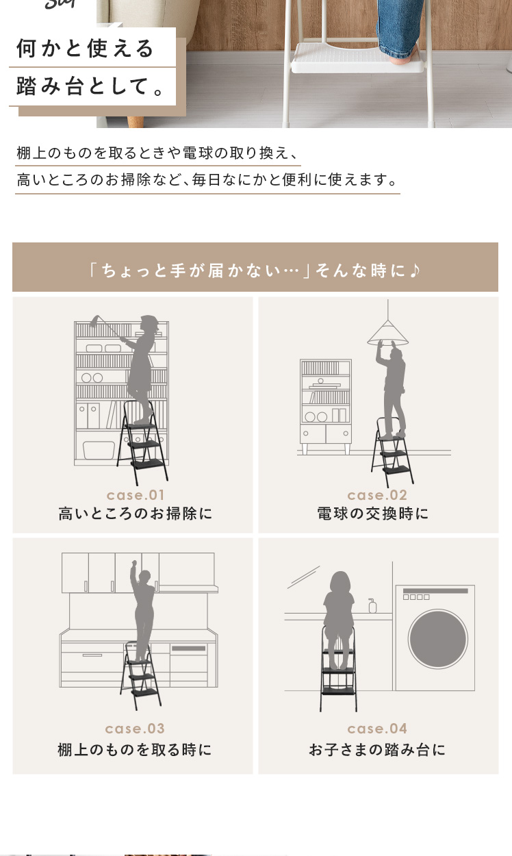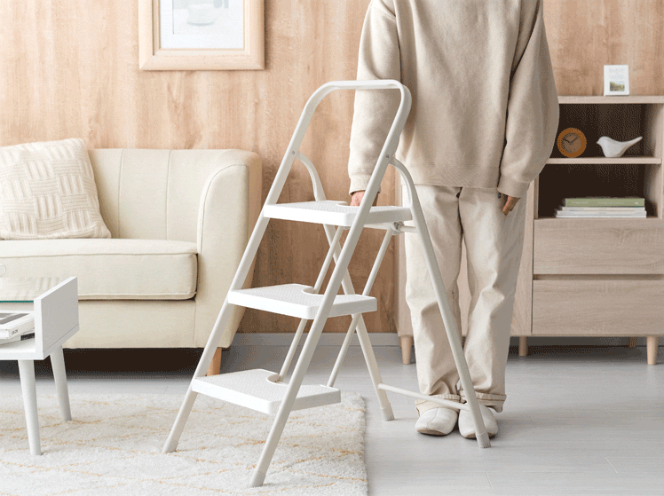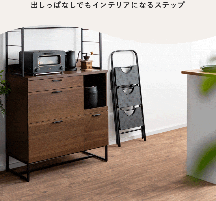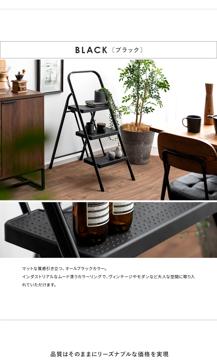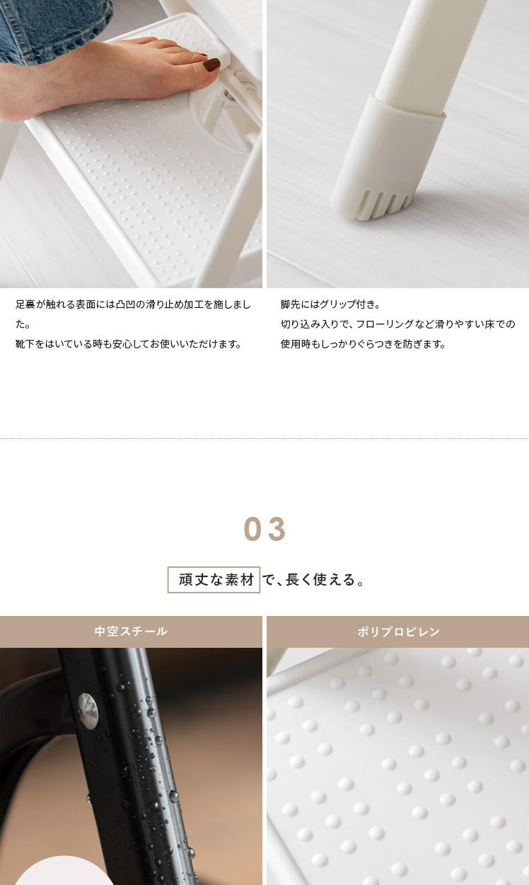 マルチステップ STANCE〔スタンス〕 3段タイプ/ワントーンで統一されたシンプルなデザインで、広げて置いたままでもインテリアになる折りたたみステップ。棚上の掃除や電球の取り付けをする際の踏み台や、ちょっとした時に座れるスツール、おしゃれなラックとして。暮らしの中でマルチに使える、シンプルなステップです。