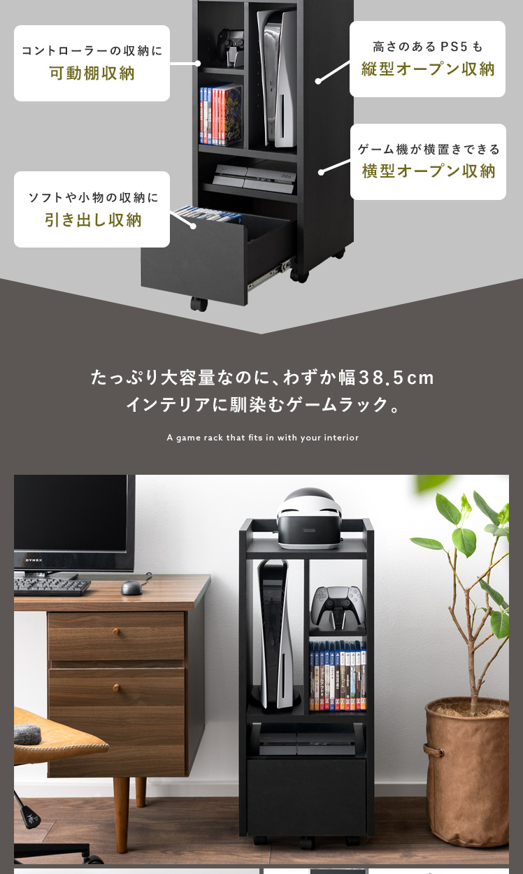収納ボックス ゲーム スリム キャスター付き