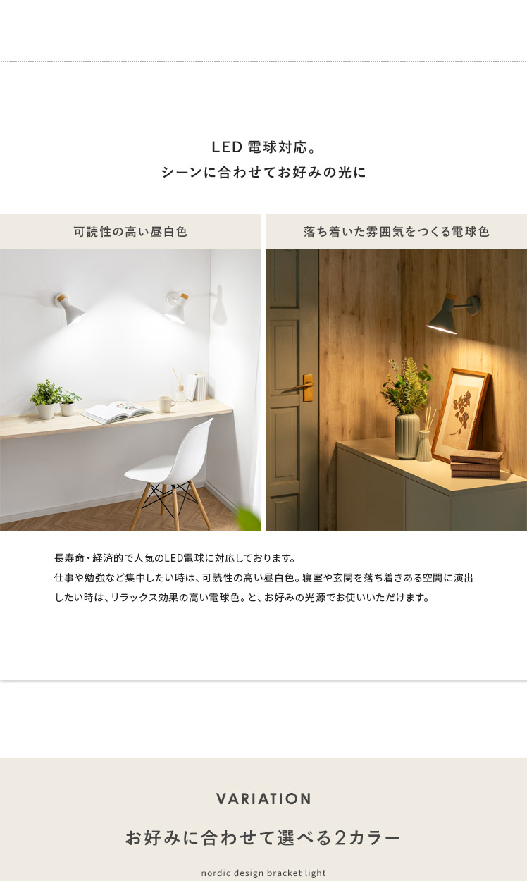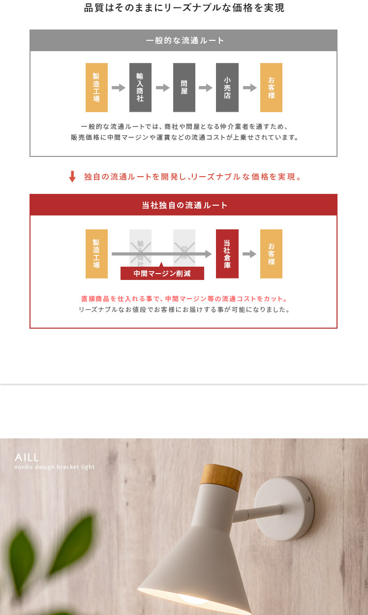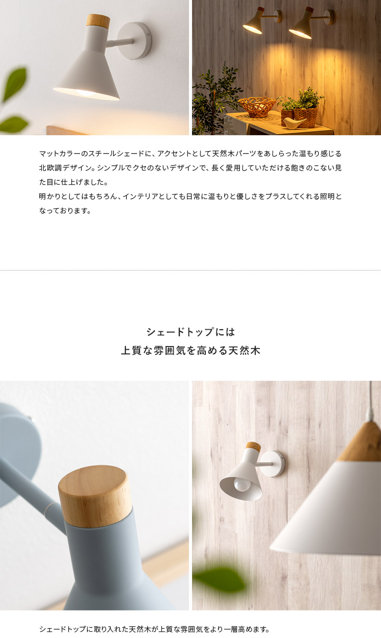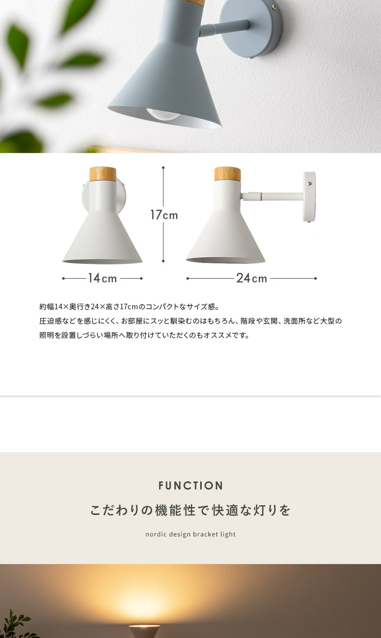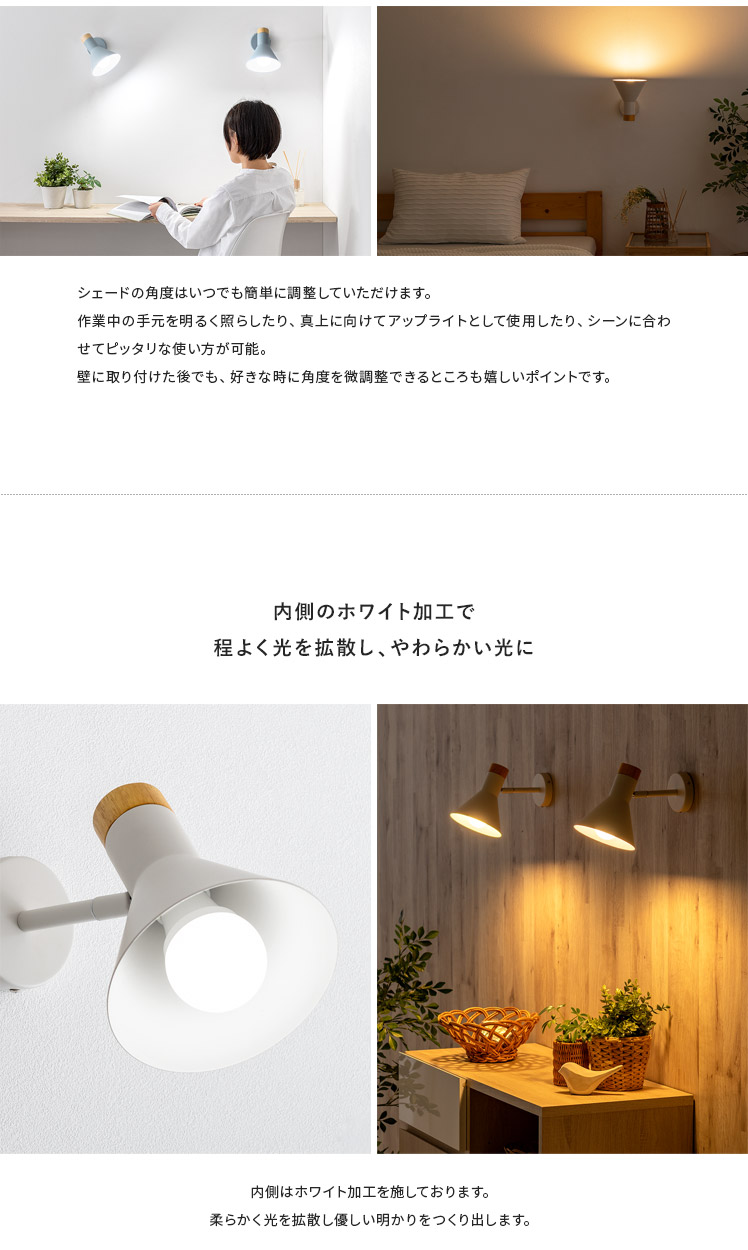 北欧調ブラケットライト AILL〔アイル〕/温もりある空間を演出する北欧調ブラケットライト。リビングや玄関の壁面に、お気に入りのアートやディスプレイを照らすように設置すれば、自慢したくなるような質の高い空間に。シェードの方向は設置後も好きな方向に調節できるので、ワークスペースやベッドルームに取り入れて、作業用ライトや間接照明のように使うのもオススメです。※取り付けには専門業者の工事が必要です。