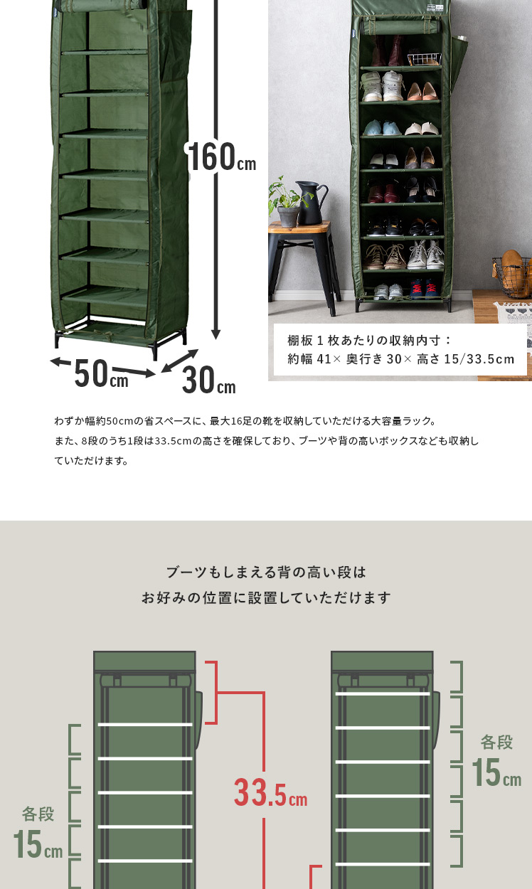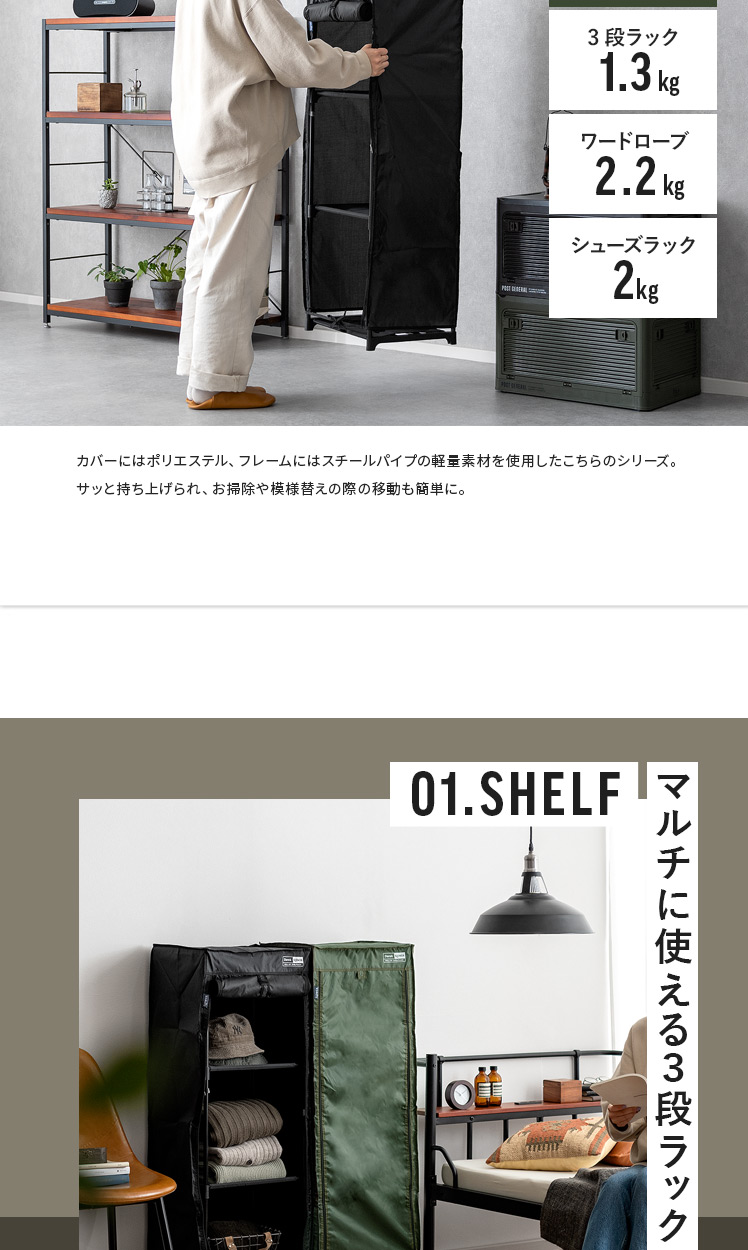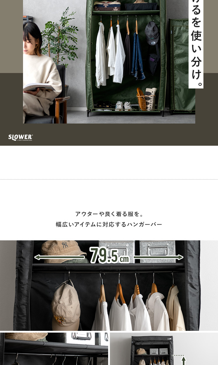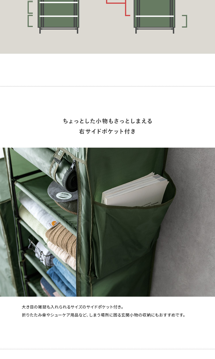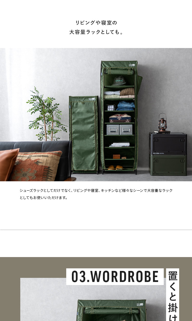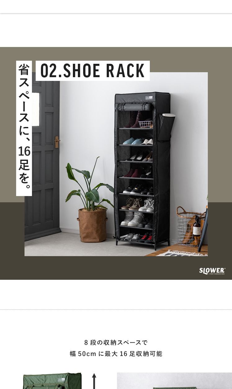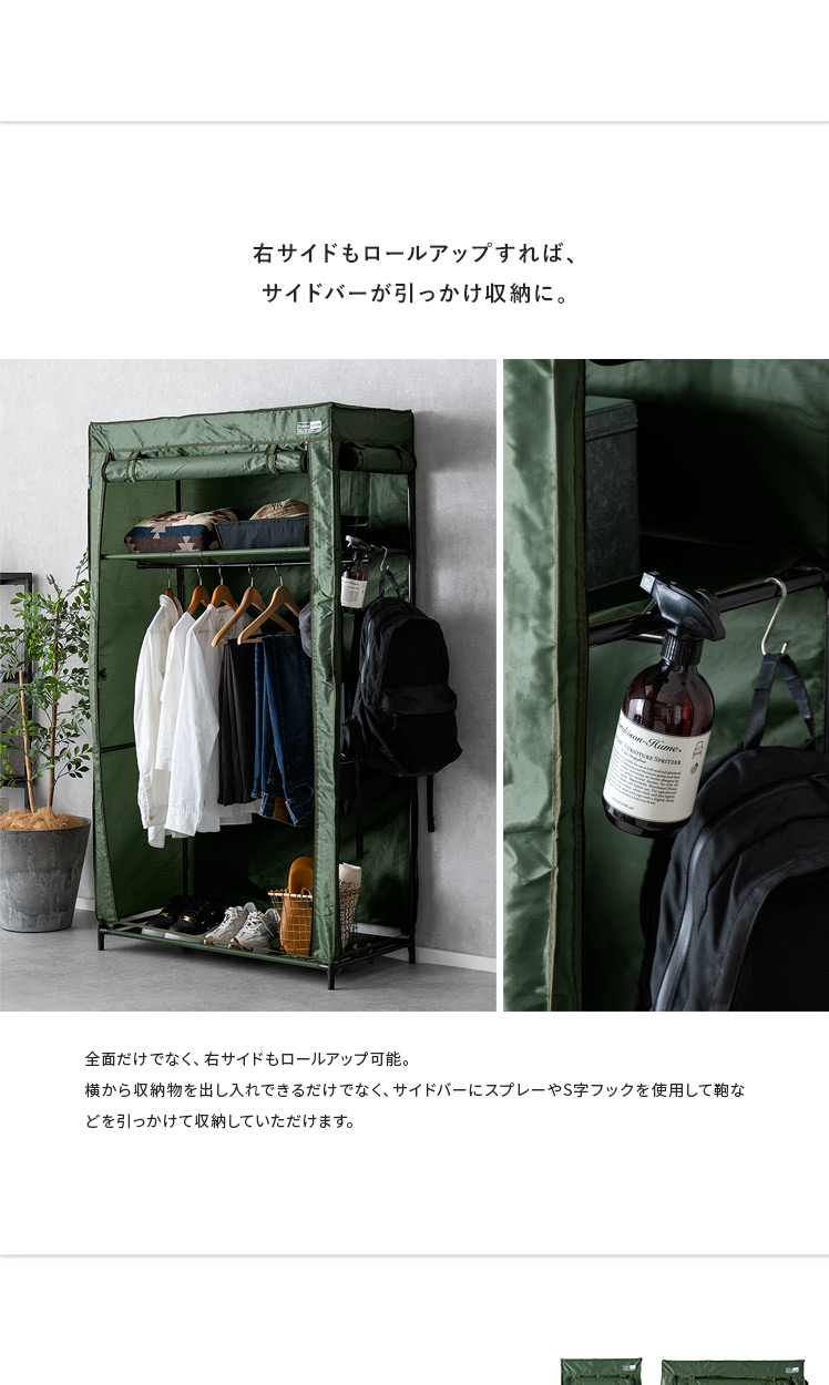 SLOWER ロールアップシューズラック “Cooper〔クーパー〕”/収納物をホコリから守りながら、お部屋の生活感も隠せるミリタリーテイストのカバー付きシェルフシリーズ。ロールアップ式でカバーの開け閉めは簡単。収納したものをきれいに保管しながら、雰囲気漂うメンズライクなお部屋を演出いたします。