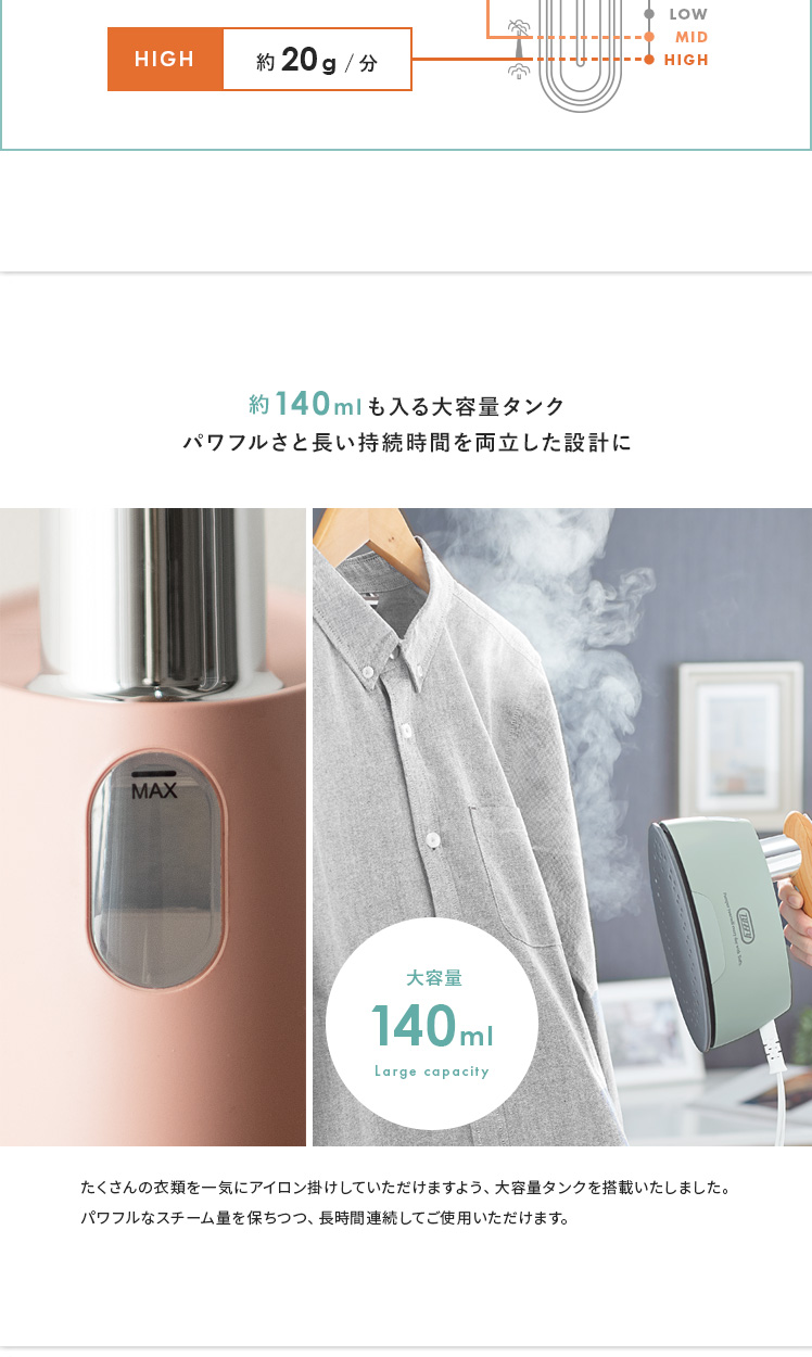 アイロン 吊るしたまま ハンディ スチーム スタイリング 片手