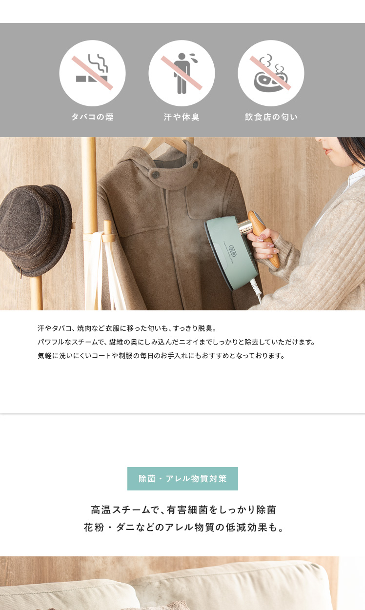 時短 しわ伸ばし 除菌 消臭 脱臭 ダニ対策 花粉 衣類
