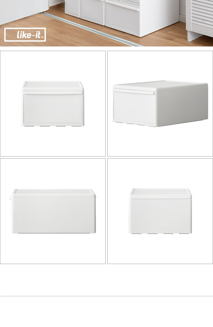 like it〔ライクイット〕 組み合わせて使える収納ケース ワイドMサイズ3個セット/収納物や使う場所に合わせて、積み重ねたり並べたり。異なる幅のものでも自由に組み合わせられる収納ケースで、自分だけの収納空間をおつくりいただけます。奥行きは全サイズ約46.5cm。小さ目のクローゼットにも収まりやすいサイズ感で、置く場所を選びません。自由自在にカスタマイズして、理想の収納スペースに。