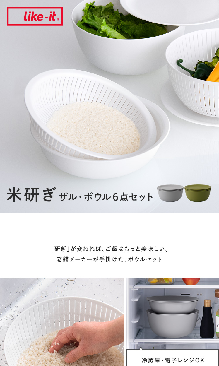 like it〔ライクイット〕米とぎにも使えるザルとボウル〔6点セット〕