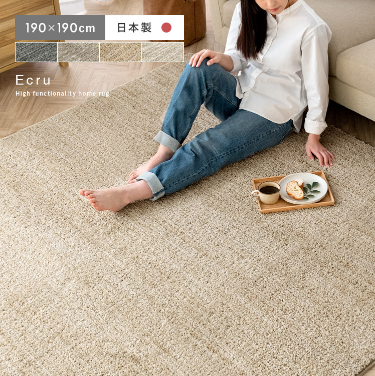 [190×190/正方形] 高機能シンプルデザインラグ エクリュ