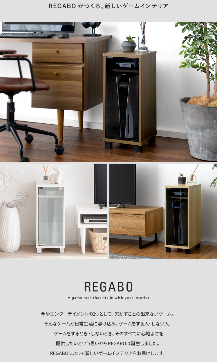 [幅25] PS5対応 デザイナーズゲームラック REGABO〔レガボ〕ガラス扉タイプ