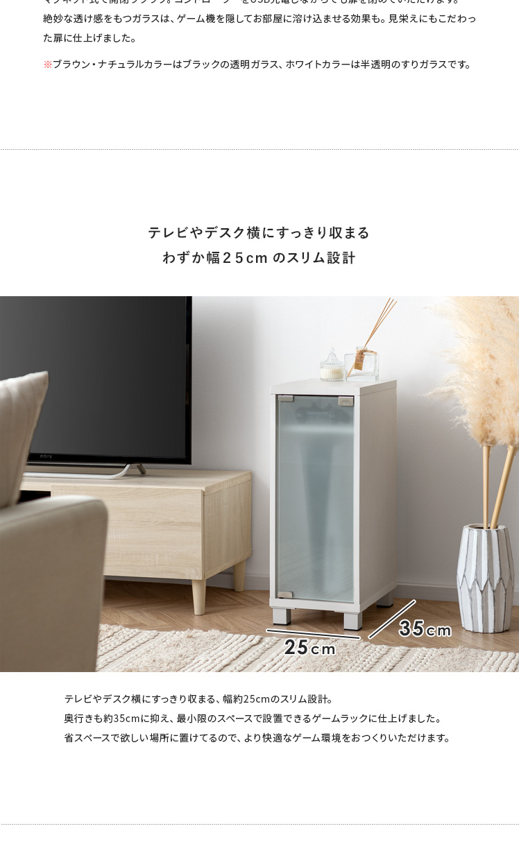 ラック ゲームラック おしゃれ 収納 収納棚 ゲーム収納 ガラス扉 リビング収納 リビング 収納ボックス ゲーム スリム PS5 ブラウン ナチュラル ホワイト 茶色 白色