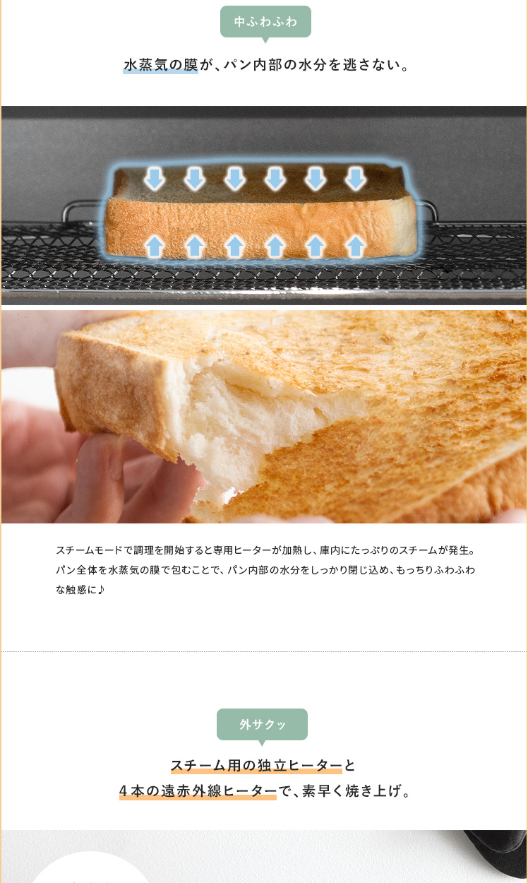 4枚焼き 遠赤外線トースター オーブントースター 水洗い可 スチーム機能付き