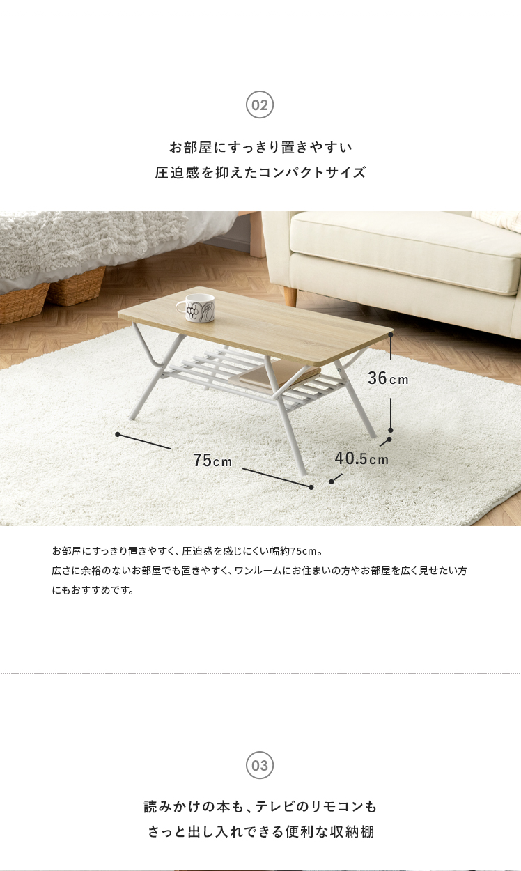 [幅75] 折りたたみ式センターテーブル Aric〔アーク〕