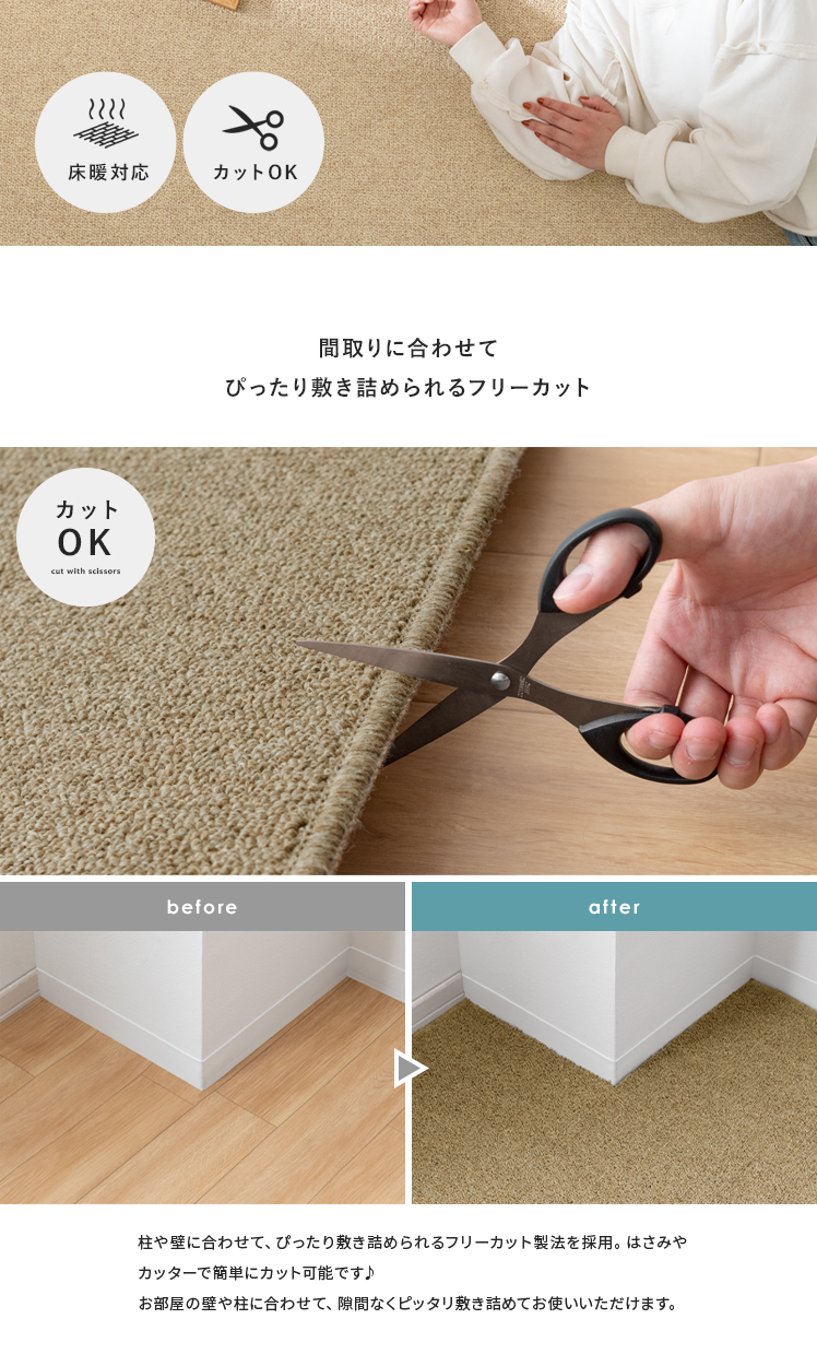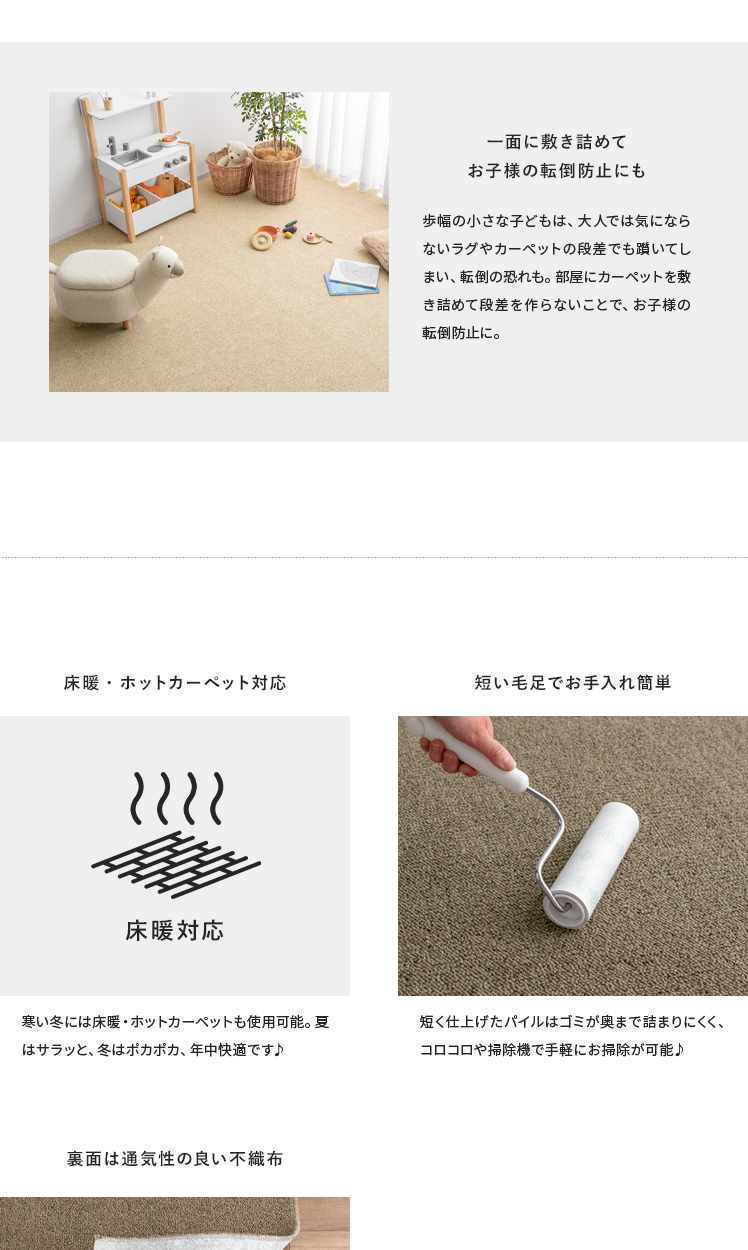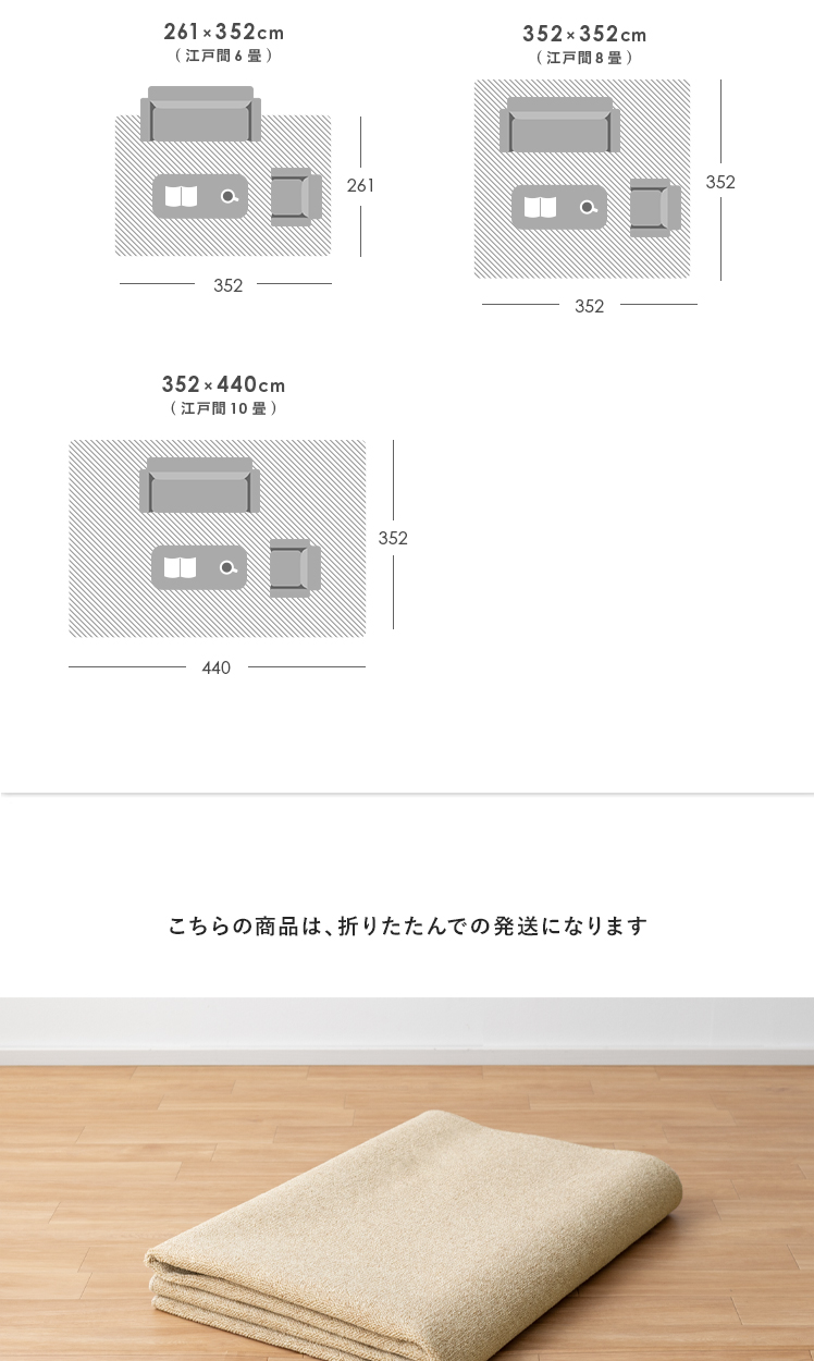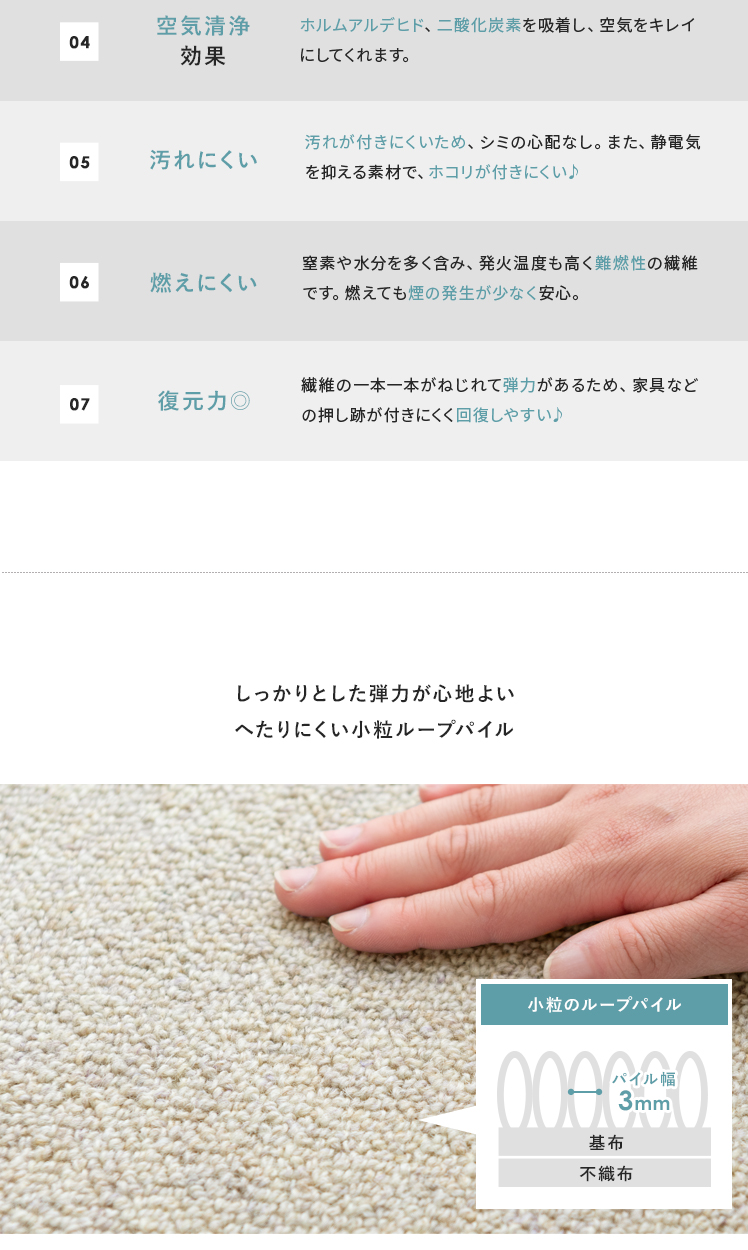 ウール100%敷き詰めカーペット OPERA〔オペラ〕352×352cm/オールシーズン快適に使える、天然ウール100%のカーペット。繊維の隙間にたくさん空気を含むので、断熱効果が高く、冷暖房の効率アップ♪夏はサラッと、冬はあったかく過ごしていただけます。さらに、防ダニ・防菌・防炎加工など、素肌への優しさを第一に考えた、高い機能性に。家族みんなが健やかに暮らせる空間をおつくりいただけます。
