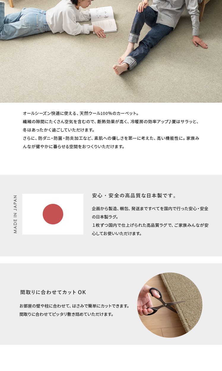 カーペット ラグ ラグマット ウール 防ダニ 防菌 防炎