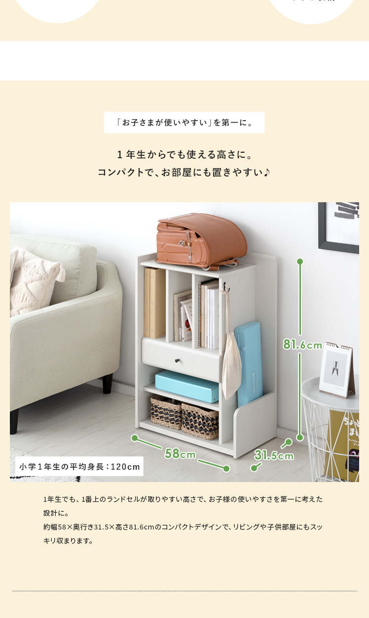 [幅58] 隠しキャスター付きランドセルラック Lapra〔ラプラ〕