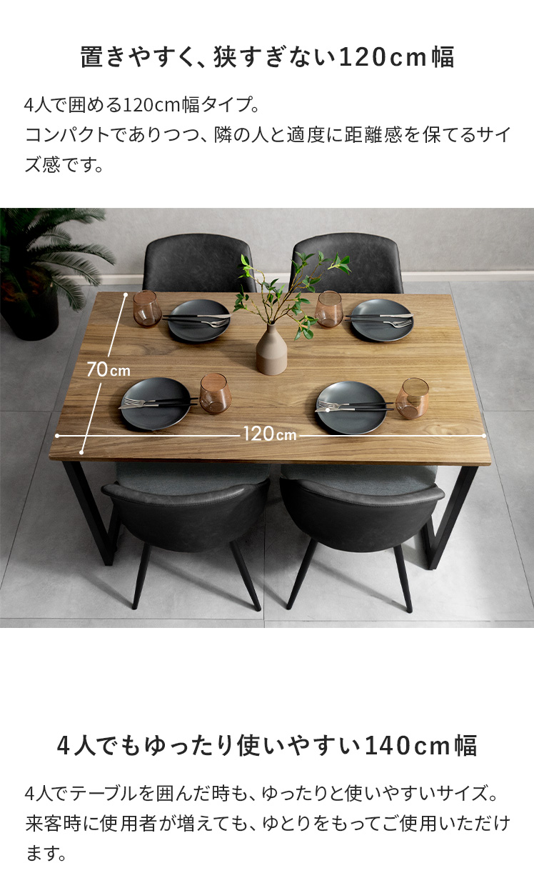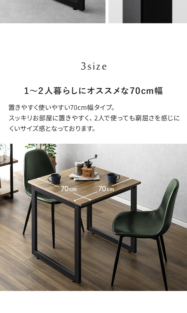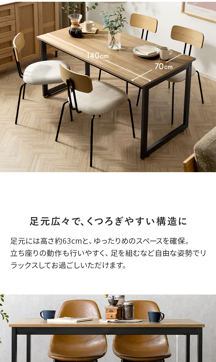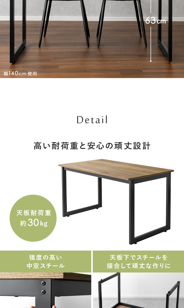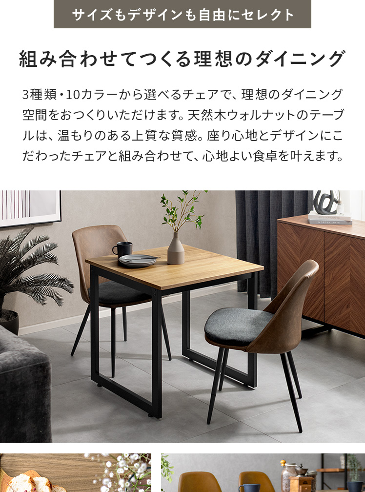 | テーブル材質 | 天然木化粧繊維板(ウォルナット突板)、スチール(粉体塗装) |