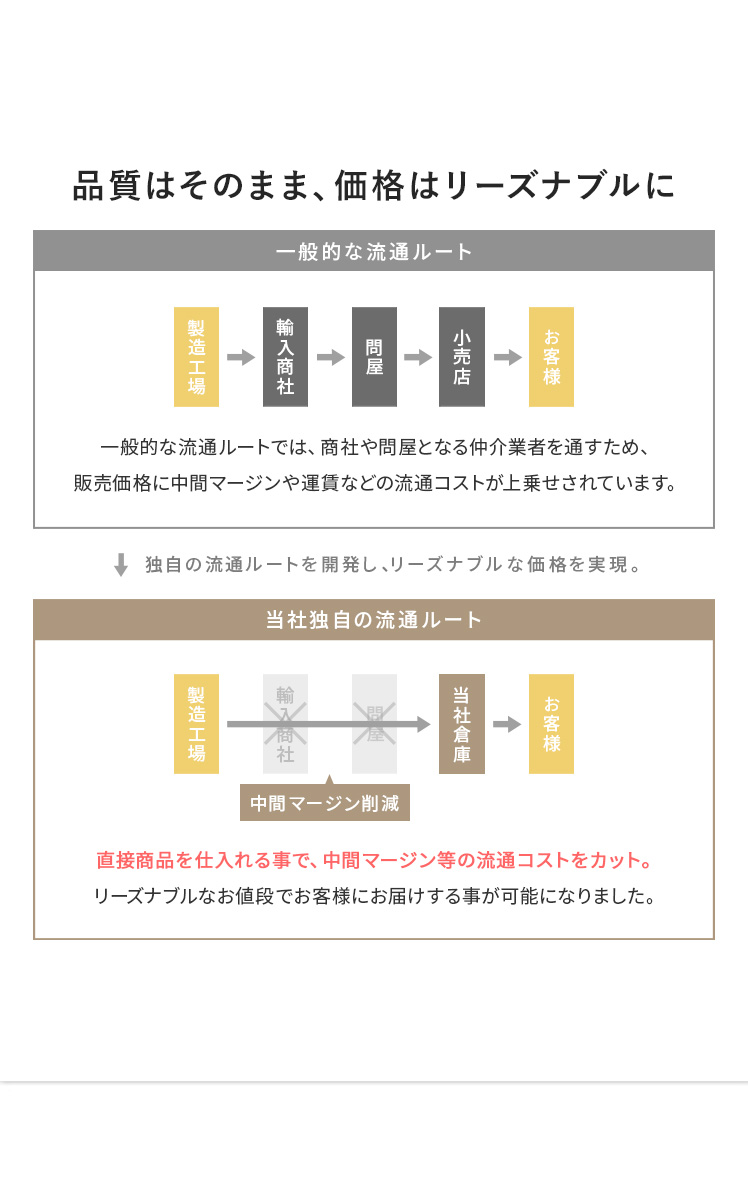 | チェア梱包サイズ(重量) | 約幅57×奥行き48×高さ59cm(約11kg) ※チェアは2カートンでお届けいたします。(1カートンに2脚) |