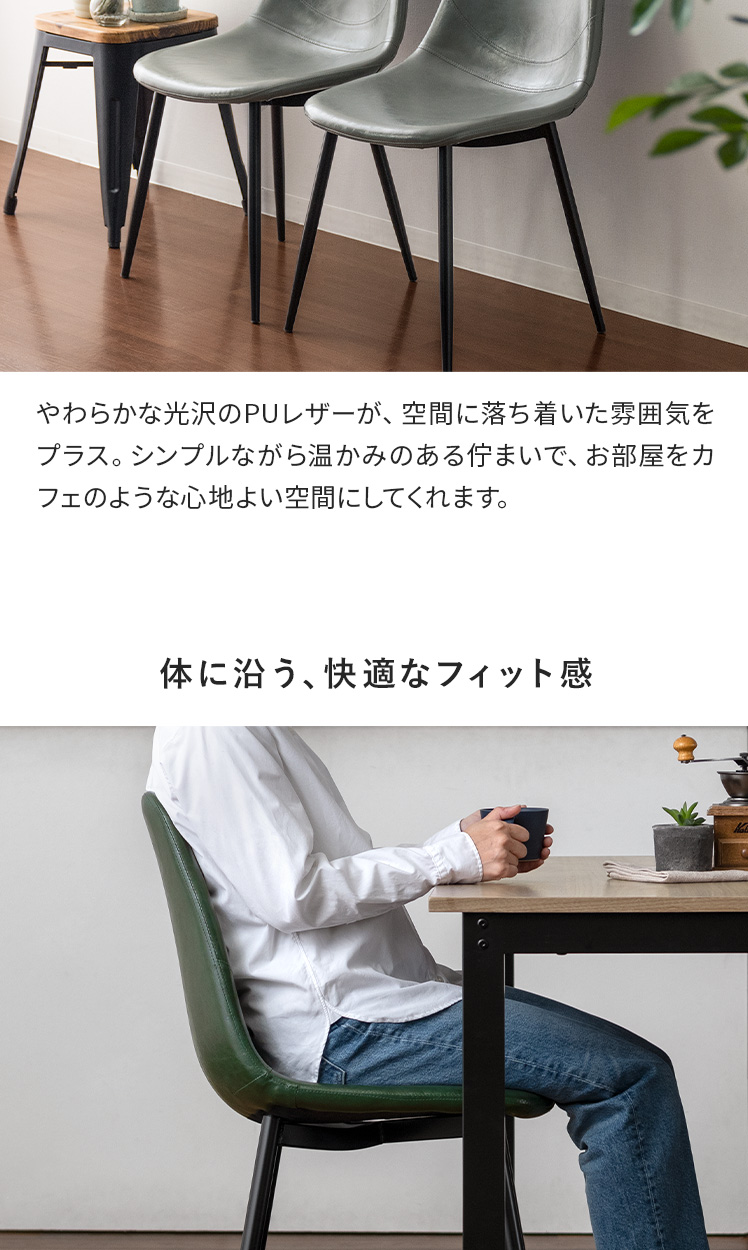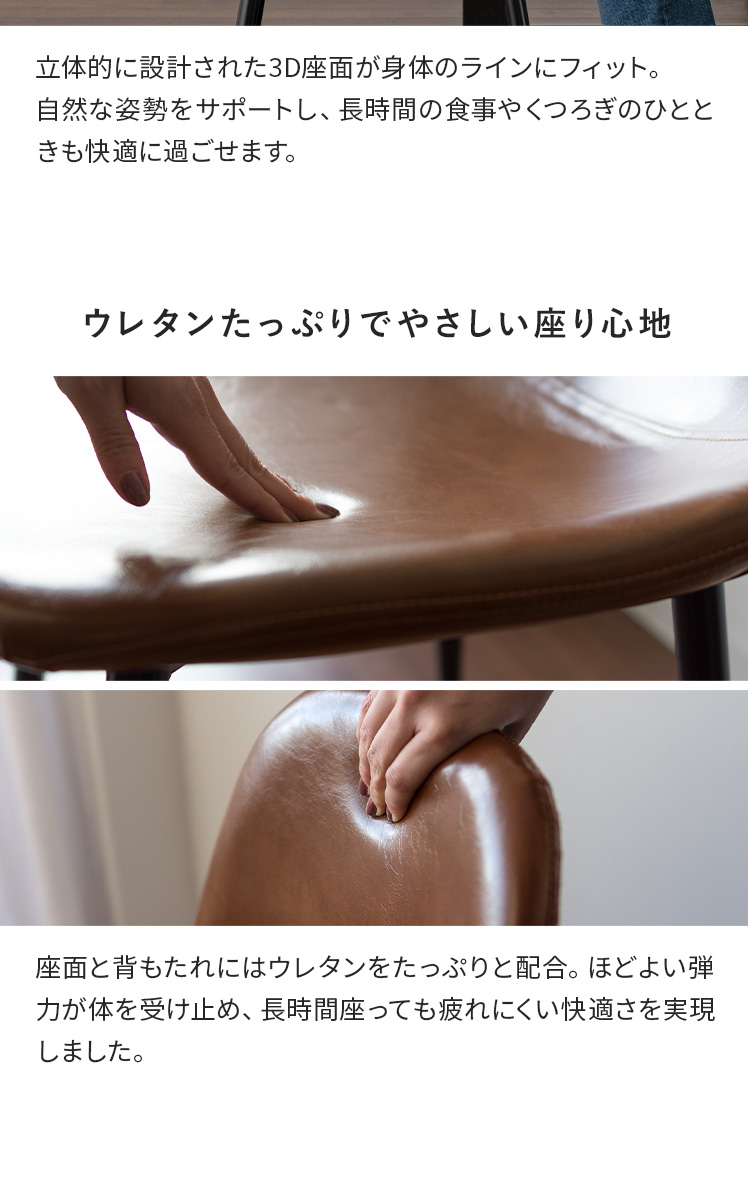 | チェア材質 | 張地/合成皮革(ポリウレタン)、中材/ウレタンフォーム、脚部/スチール(粉体塗装) |
