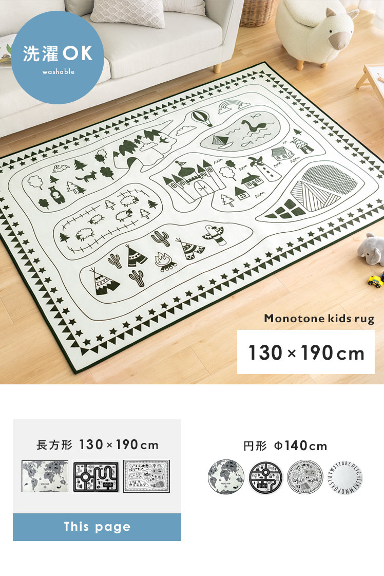[130×190/長方形] モノトーンキッズラグ 長方形130×190cm