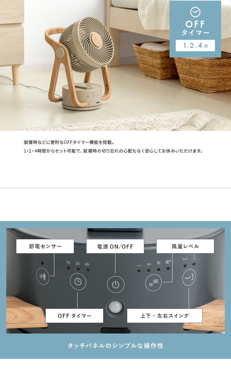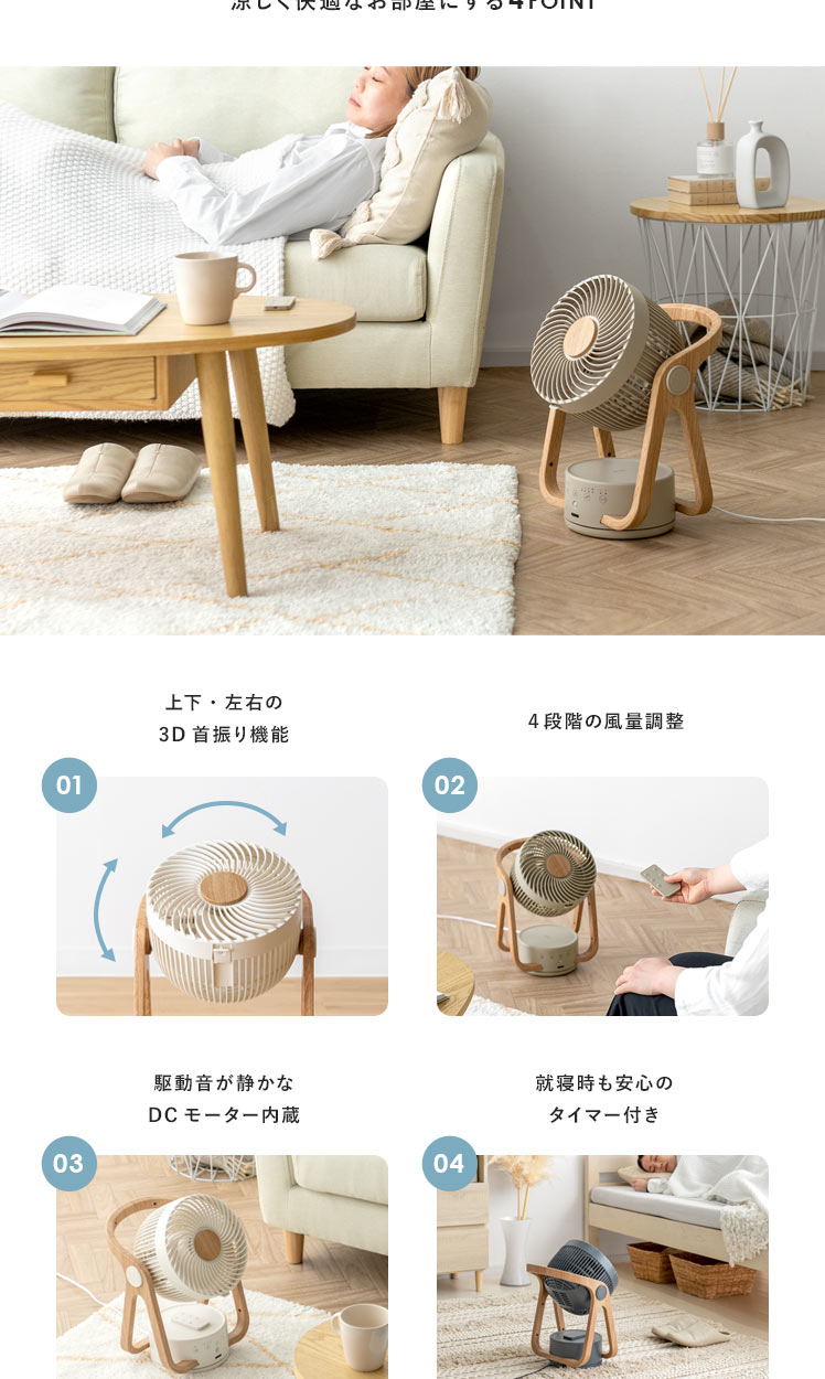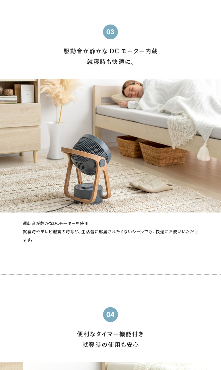 DCモーター 自動首振り コンパクト 省エネ 節電 ウッド タイマー 首ふり