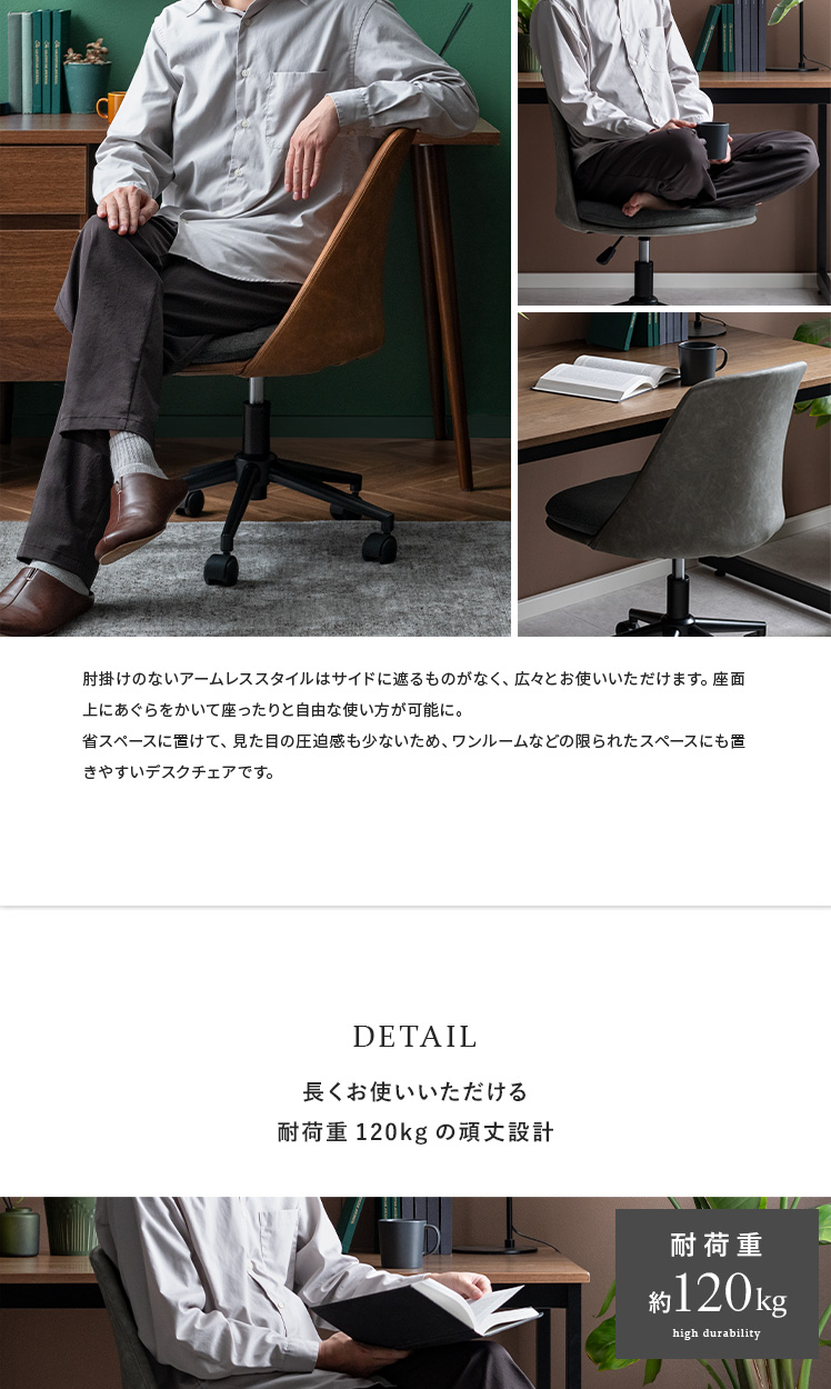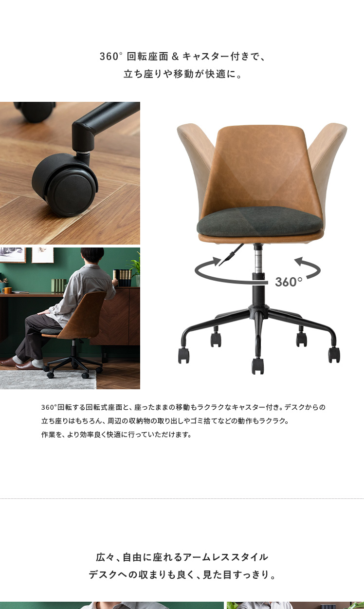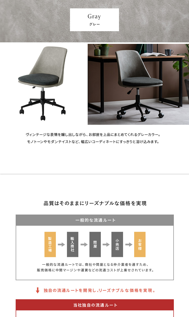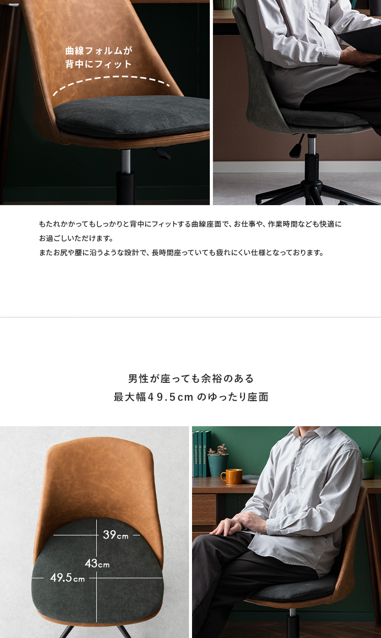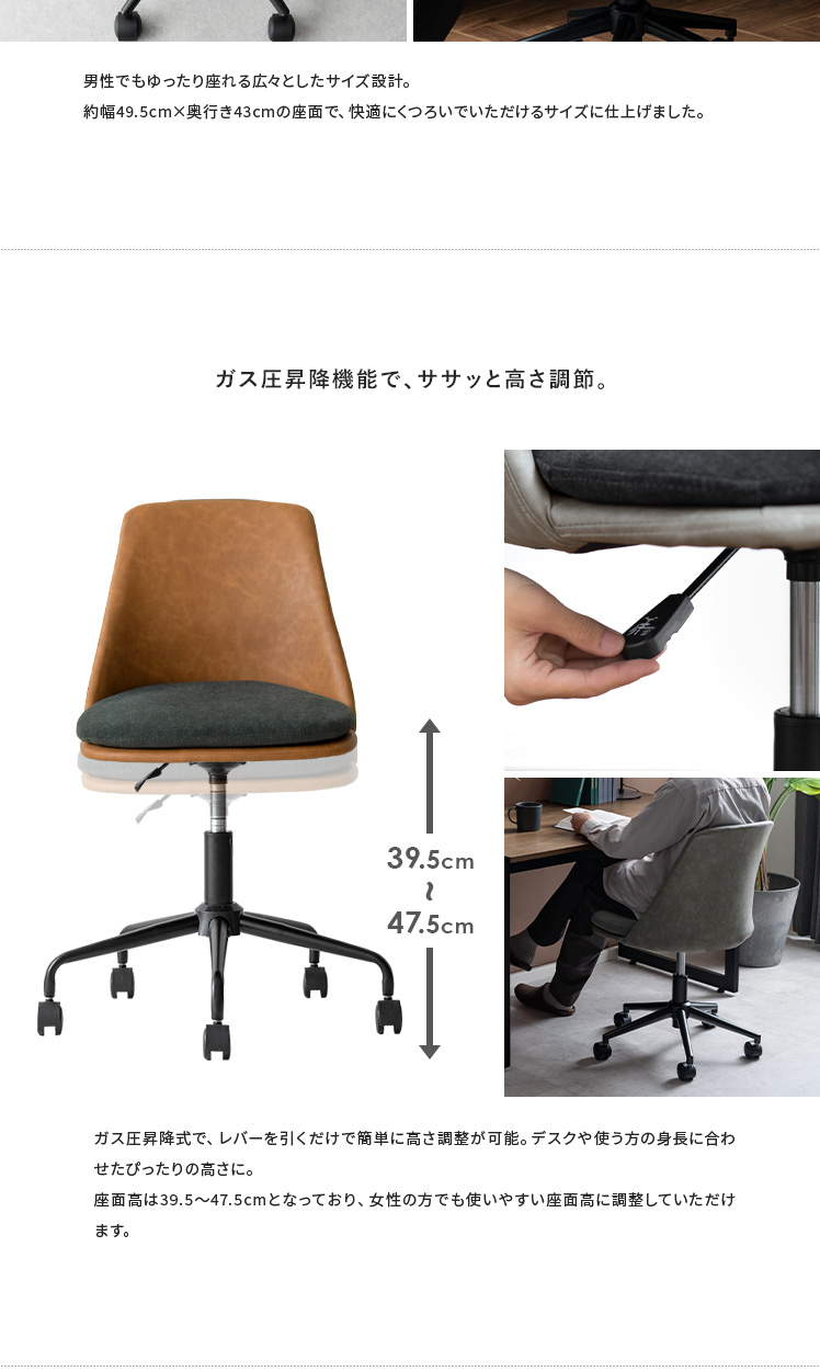 デスクチェア Roel〔ロエル〕 /PUレザーとファブリックの、2つの生地を座面に使用したデスクチェア”Roel(ロエル)”ふんわりとしたクッション性が、長時間座っても疲れにくくするため、作業やお仕事も快適に過ごしていただけます。また、PUレザーとファブリック生地のツートンデザインに仕上げました。品の良いPUレザーと落ち着いたファブリック生地、スチール脚部が調和し、温かみのある空間をおつくりいただけます。