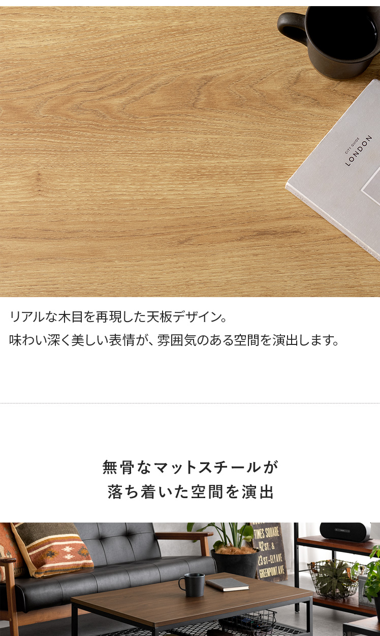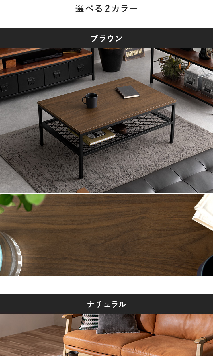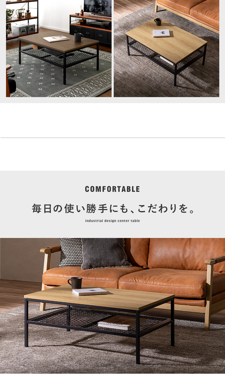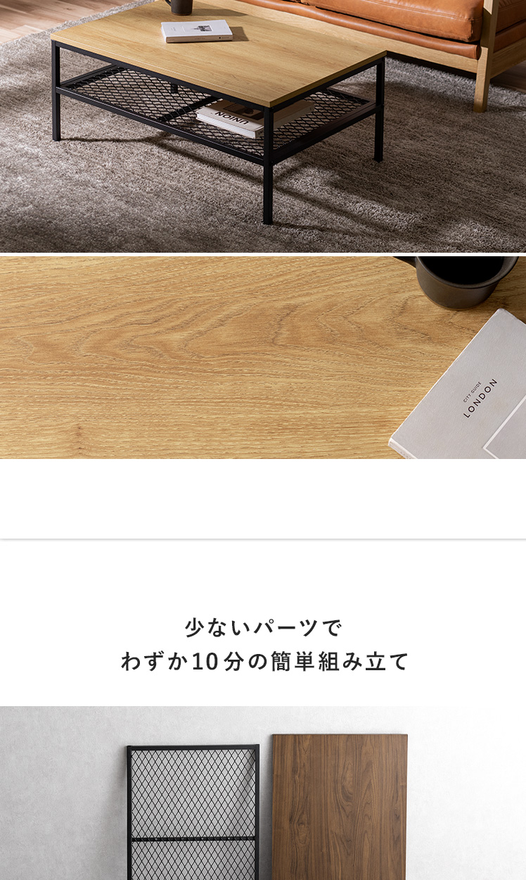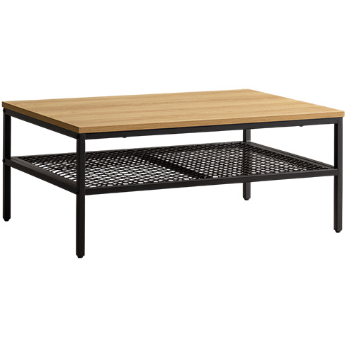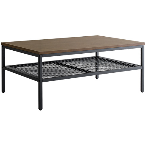 メッシュ棚付きリビングテーブルGRETA〔グレタ〕/美しくリアルな木目調と、重厚なスチールを組み合わせたインダストリアルデザイン。無骨な雰囲気の佇まいで、憧れのカフェのような空間をおつくりいただけます。