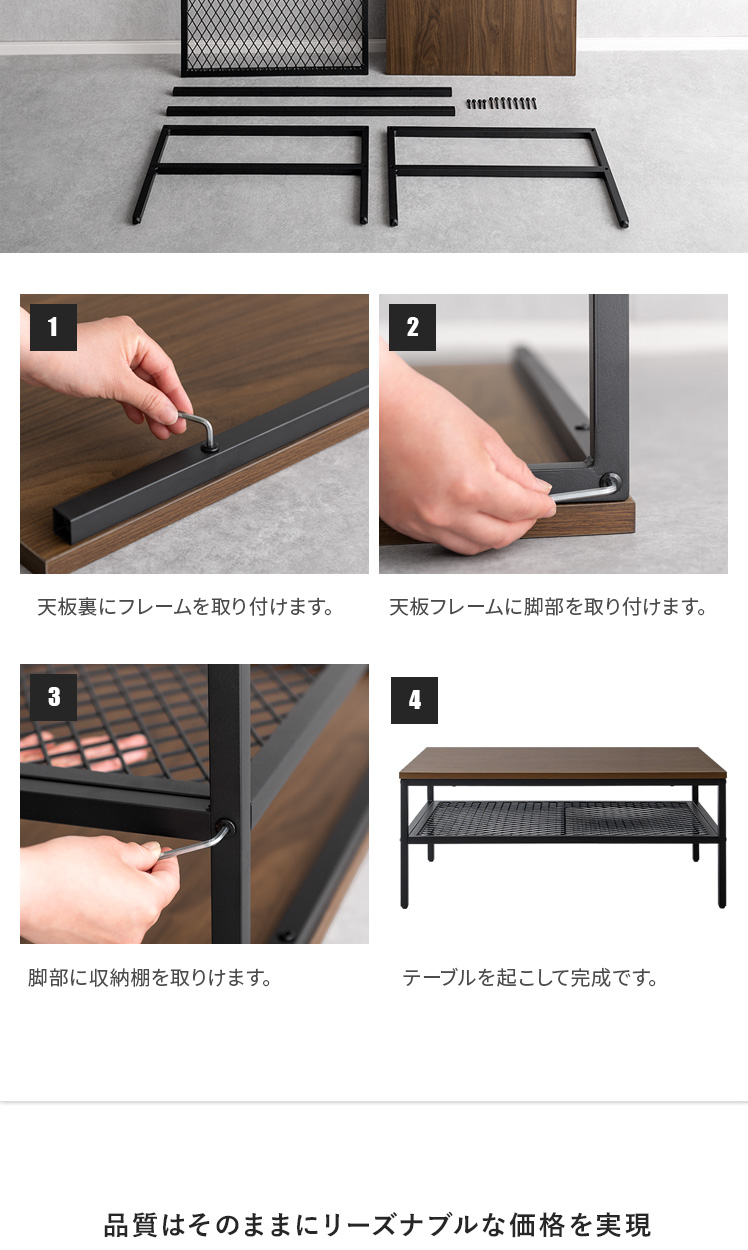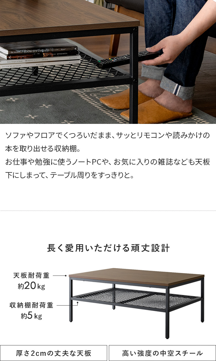 [幅90] メッシュ棚付きリビングテーブルGRETA〔グレタ〕
