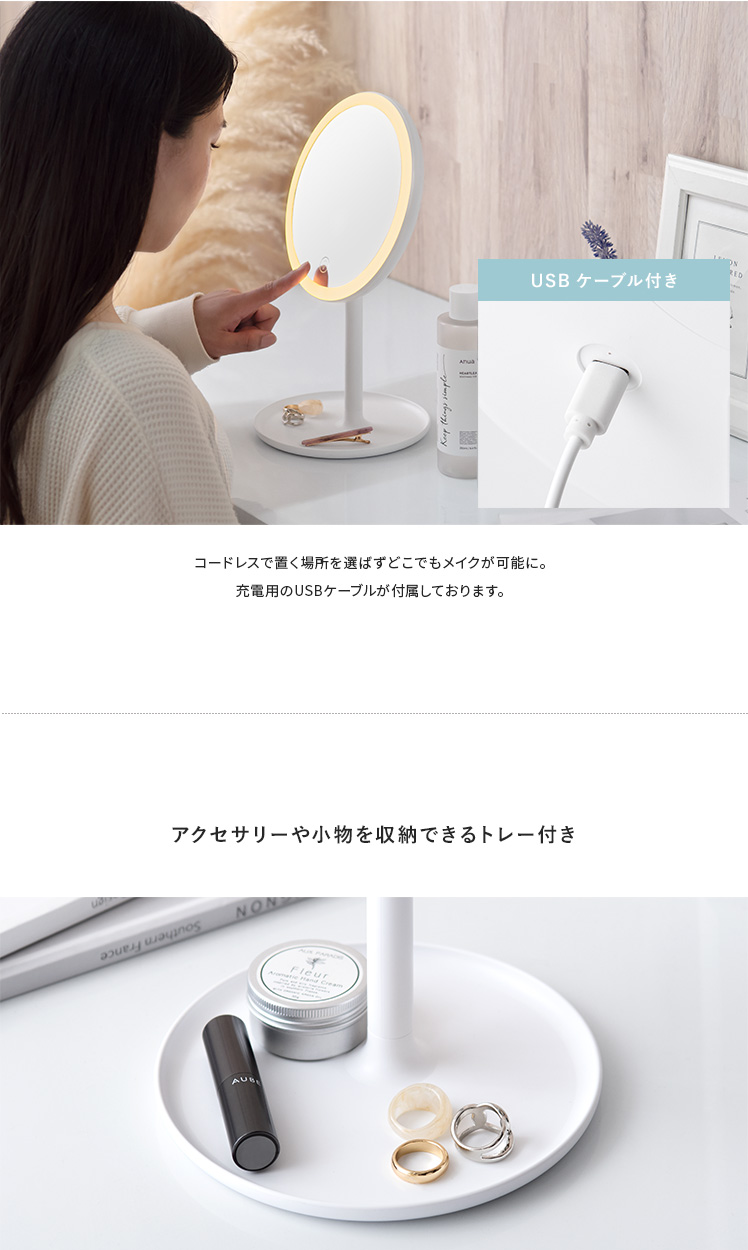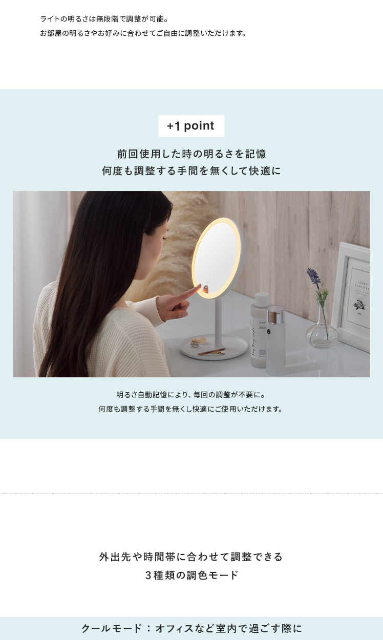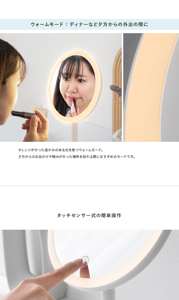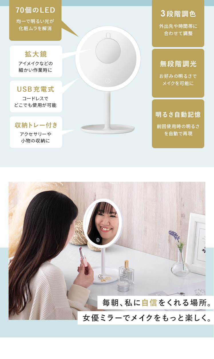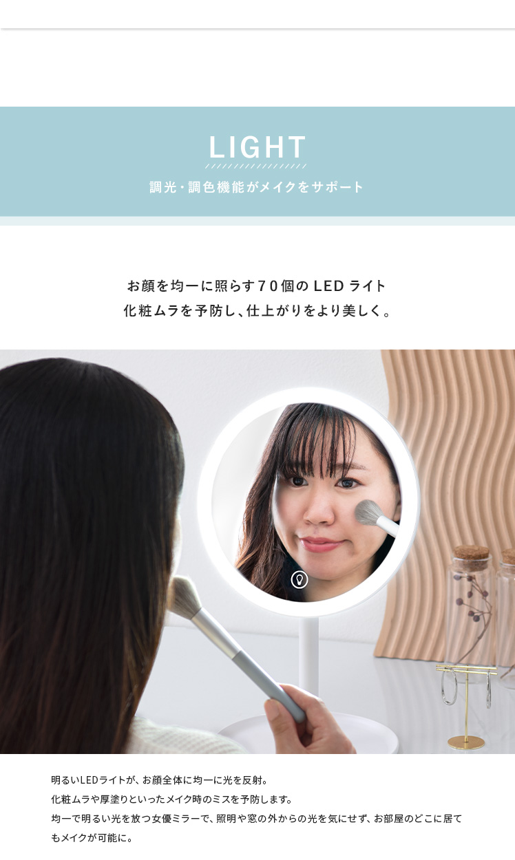 ライト付きミラー メイク ヘアメイク LED 無段階調光