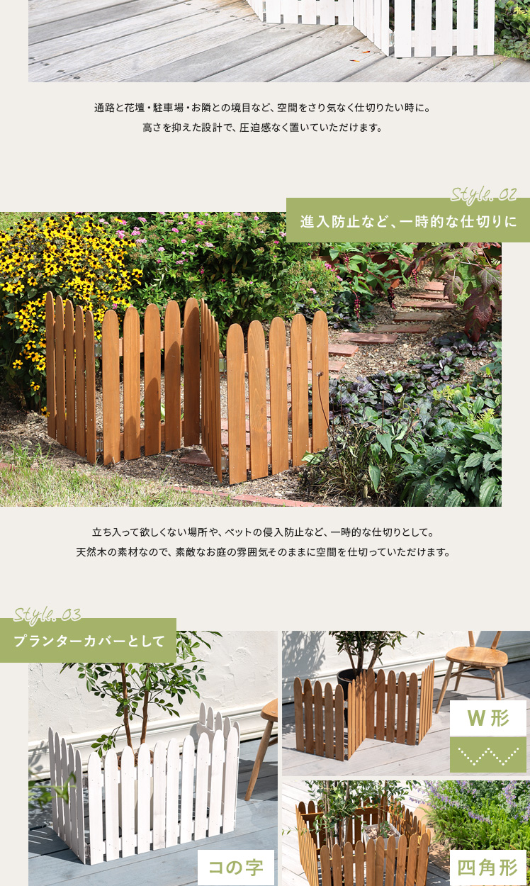 天然木 ウッドフェンス 仕切り 花壇 玄関 ローフェンス 外