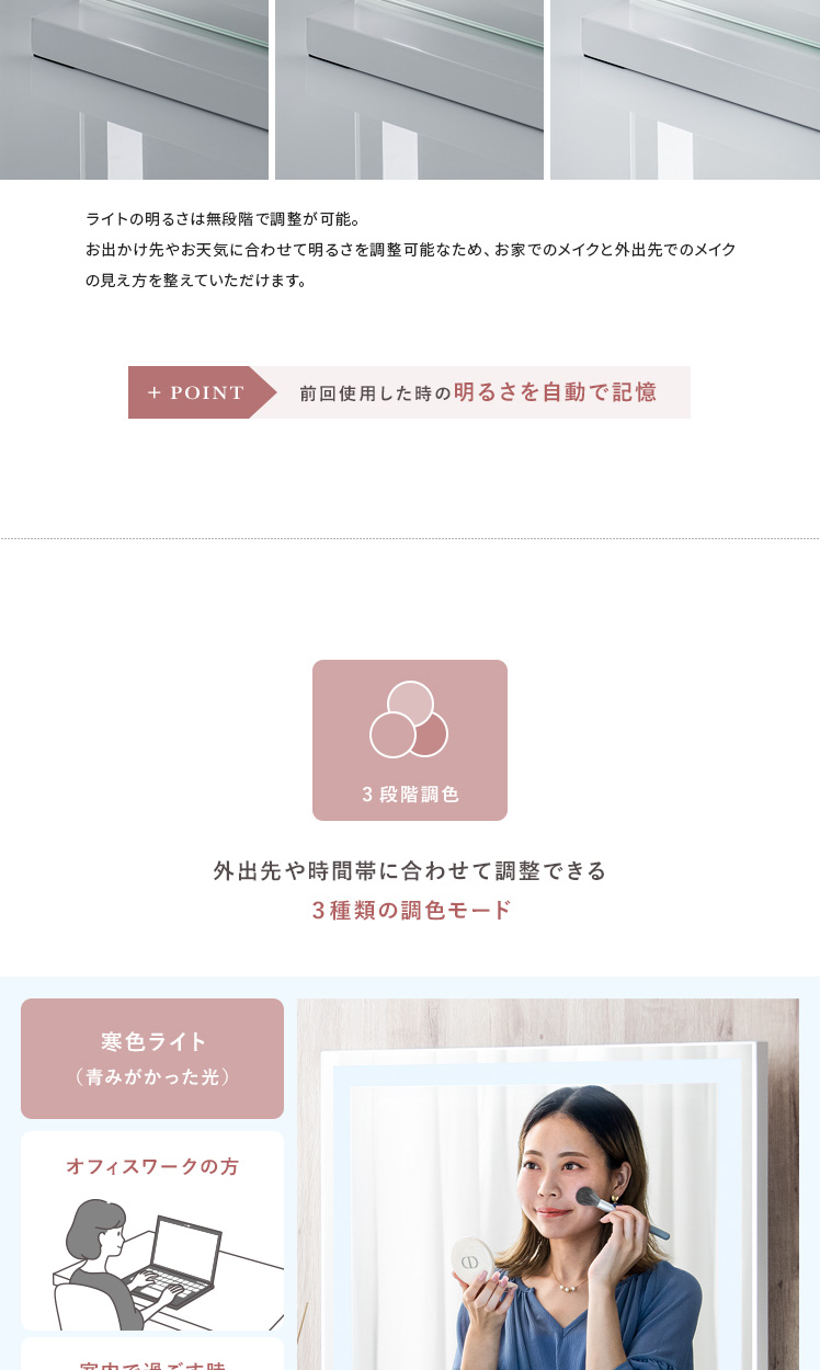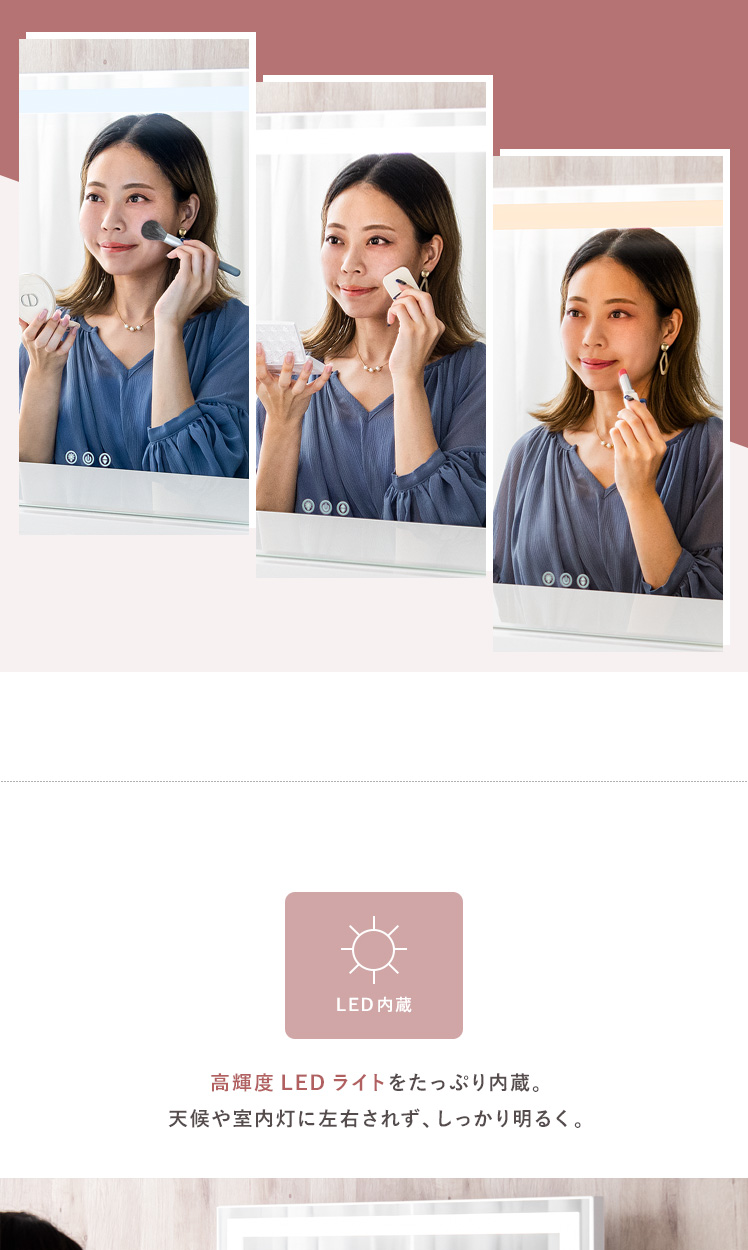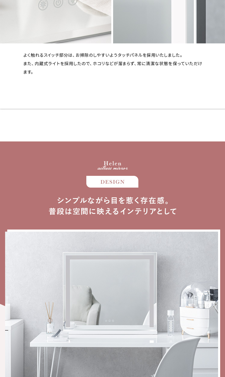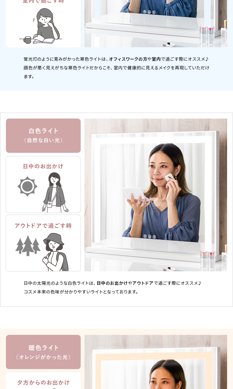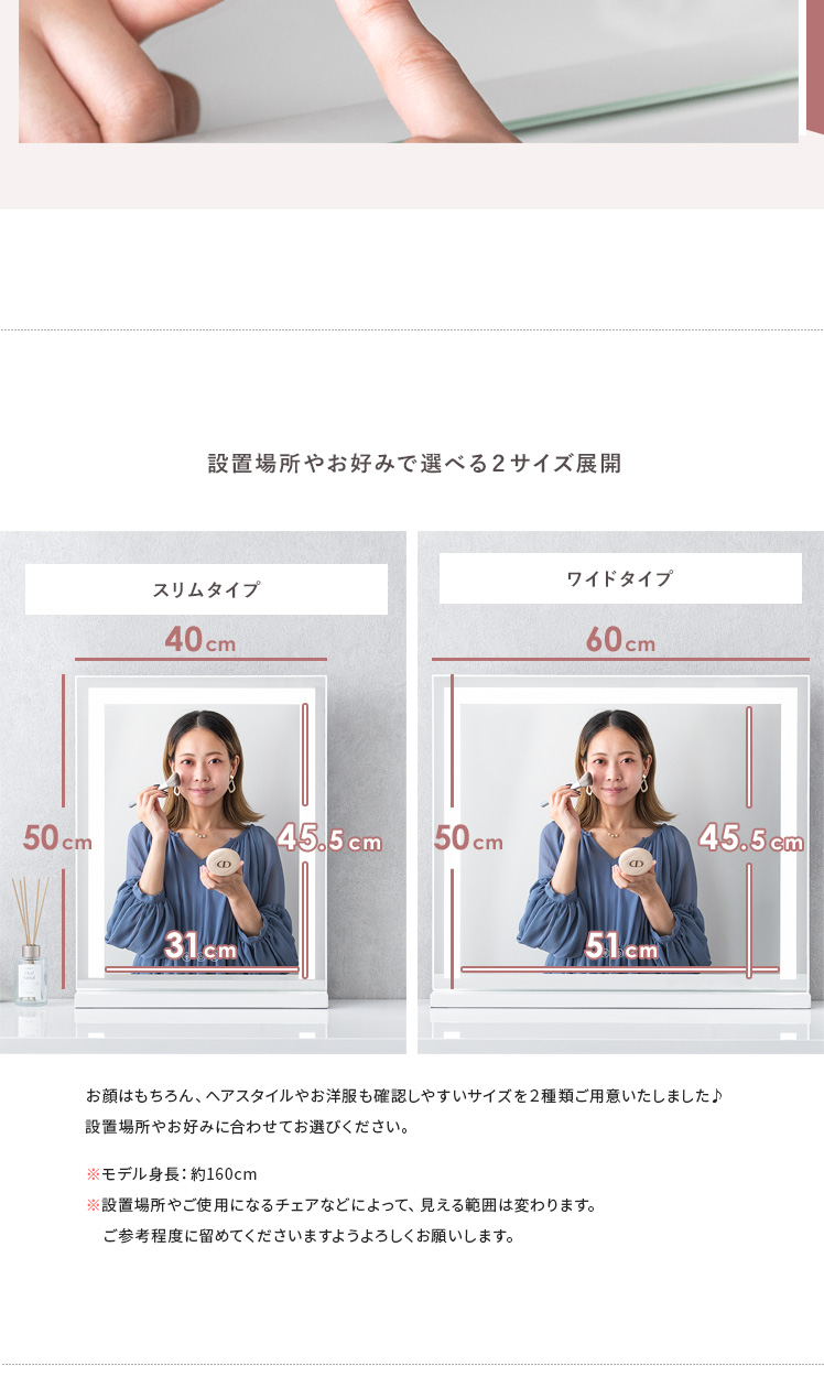 女優ミラー Helen〔ヘレン〕スリムタイプ/「家で見た時はメイクいい感じだったのに」「顔色悪いねって言われてしまった」なんて経験ありませんか?もしかしたらそれ、メイクが下手だからではなく、照明のせいかもしれません。家と外とのギャップを無くす女優ミラーで光別メイクを極めて、今日からメイクをアップグレードしてみませんか?