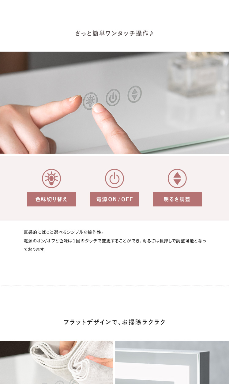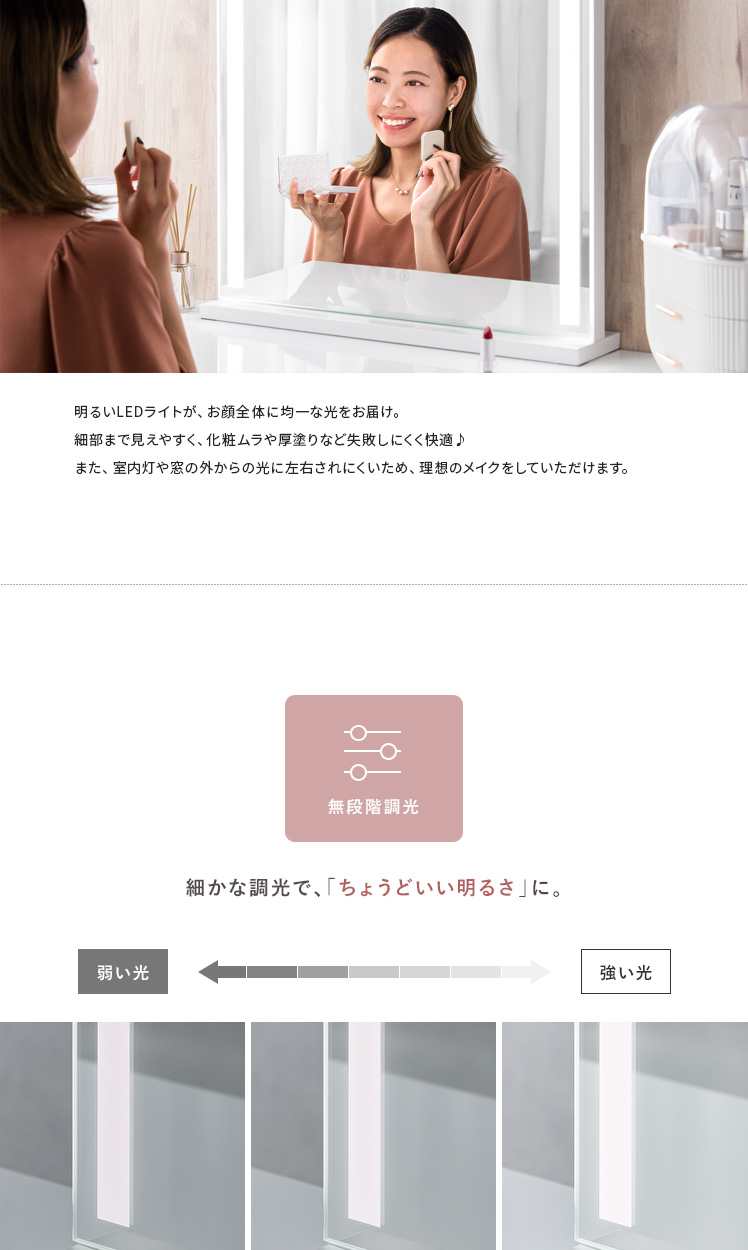 鏡 卓上ミラー 長方形ミラー ライト付き メイク ヘアメイク LED 無段階調光 3段階調色 自動記憶 リビング デスク シンプル スタイリッシュ おしゃれ かわいい 白 ホワイト【5%OFFクーポン対象|公式なら毎日お得】
