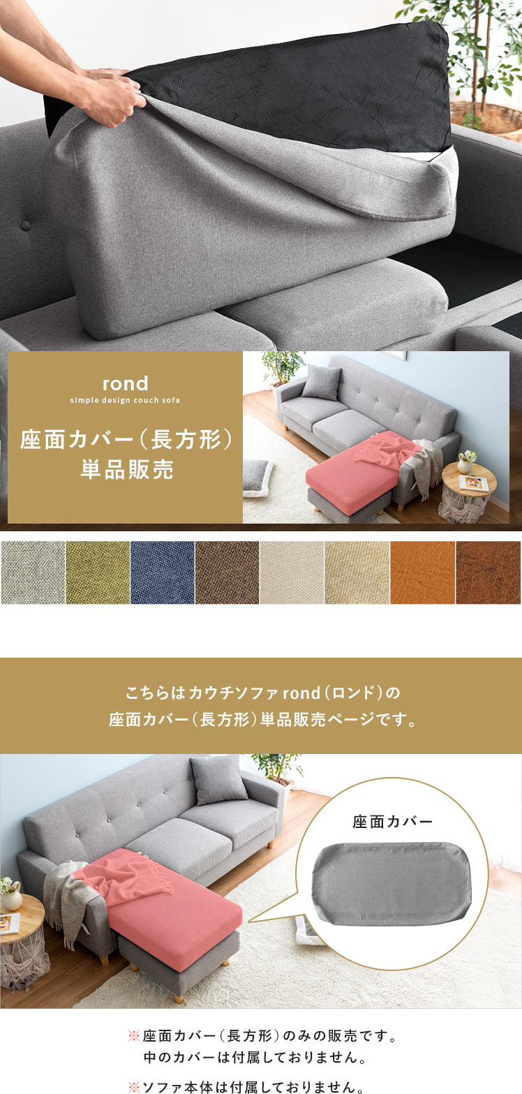 【座面カバー〔長方形〕単品販売】カウチソファ rond(ロンド)専用パーツ