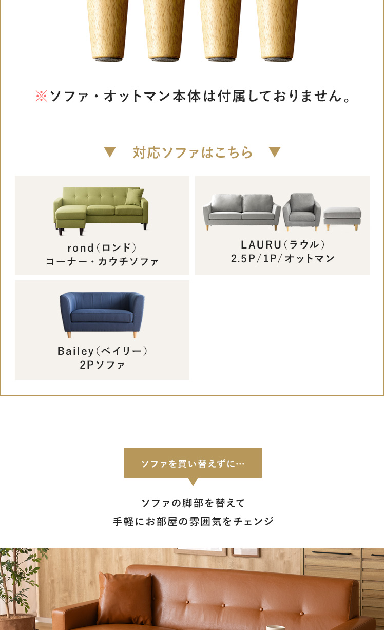 脚部パーツ4本セットのみの販売です。ソファ本体は付属しておりません。【5%OFFクーポン対象|公式なら毎日お得】
