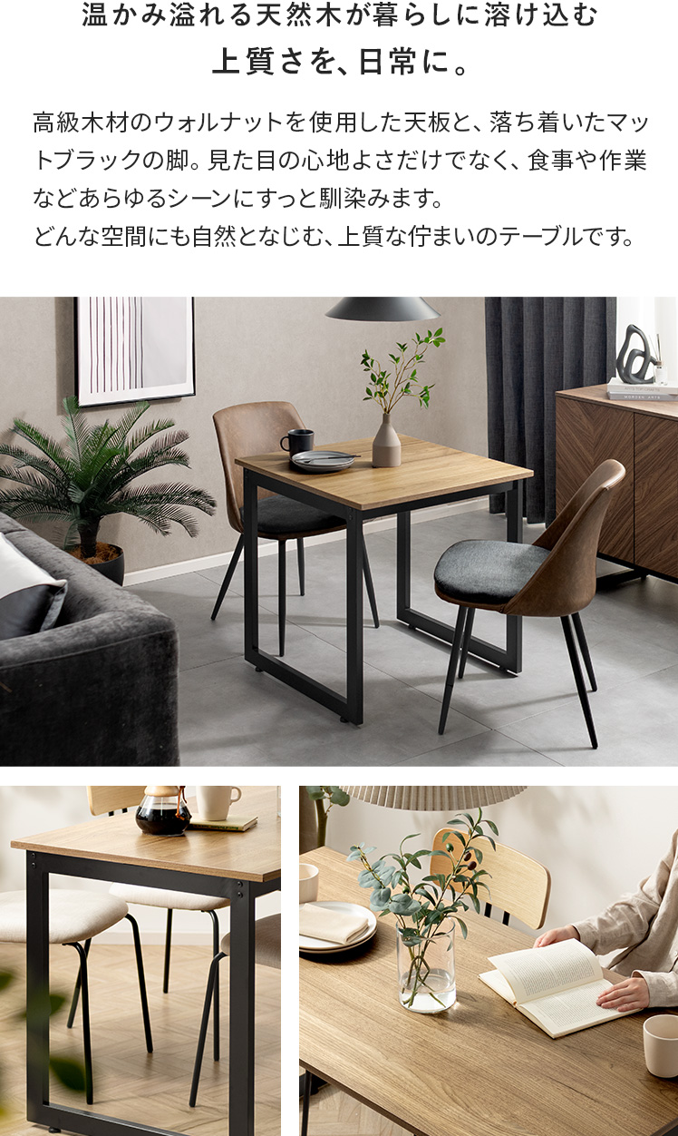 テーブル 食卓テーブル アイアン スチール スクエア脚 木製 2人 ロの字 ウォールナット【5%OFFクーポン対象|公式なら毎日お得】