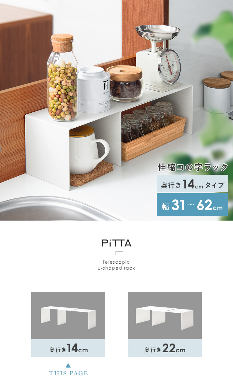 [幅31〜62] 伸縮コの字ラック PiTTA 〔奥行き14cmタイプ〕