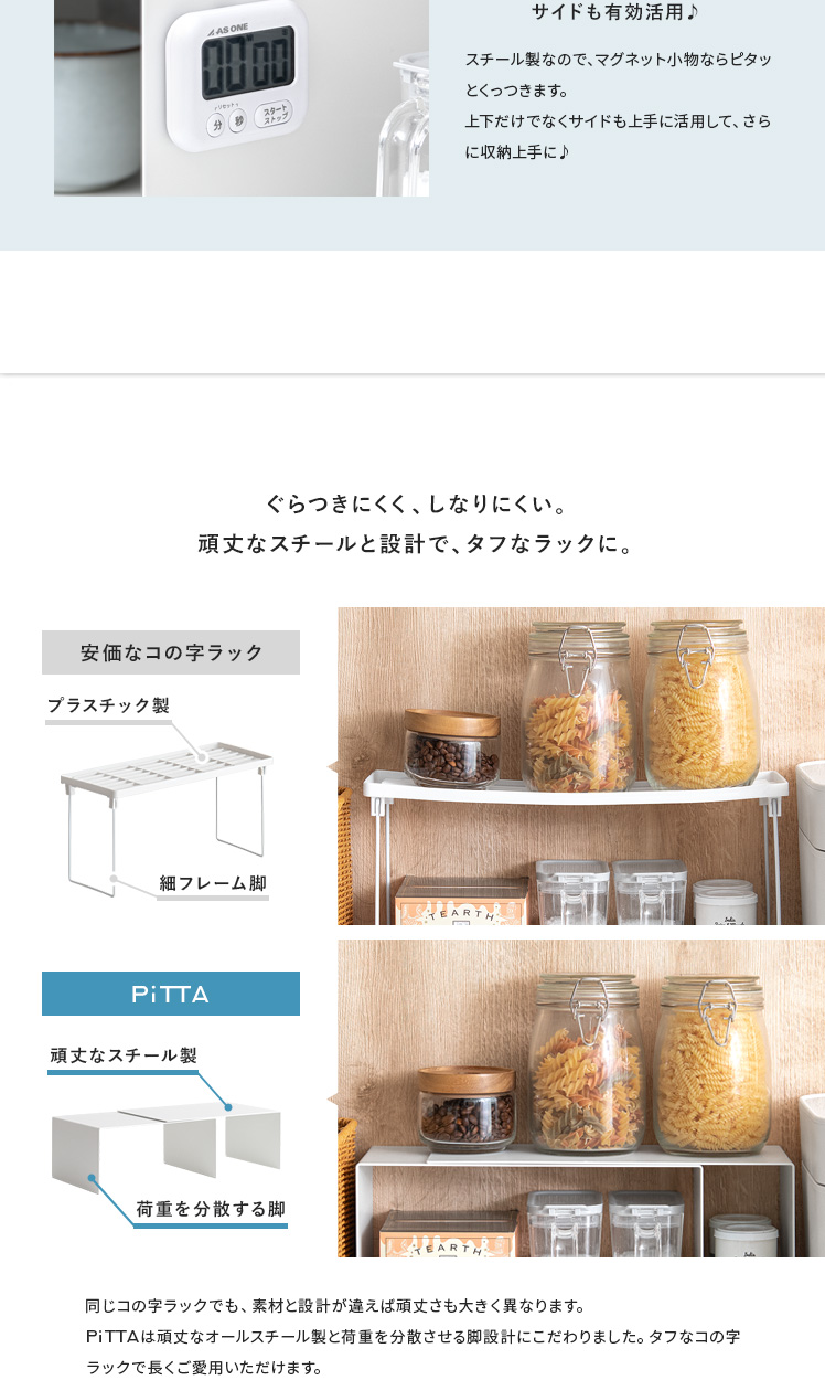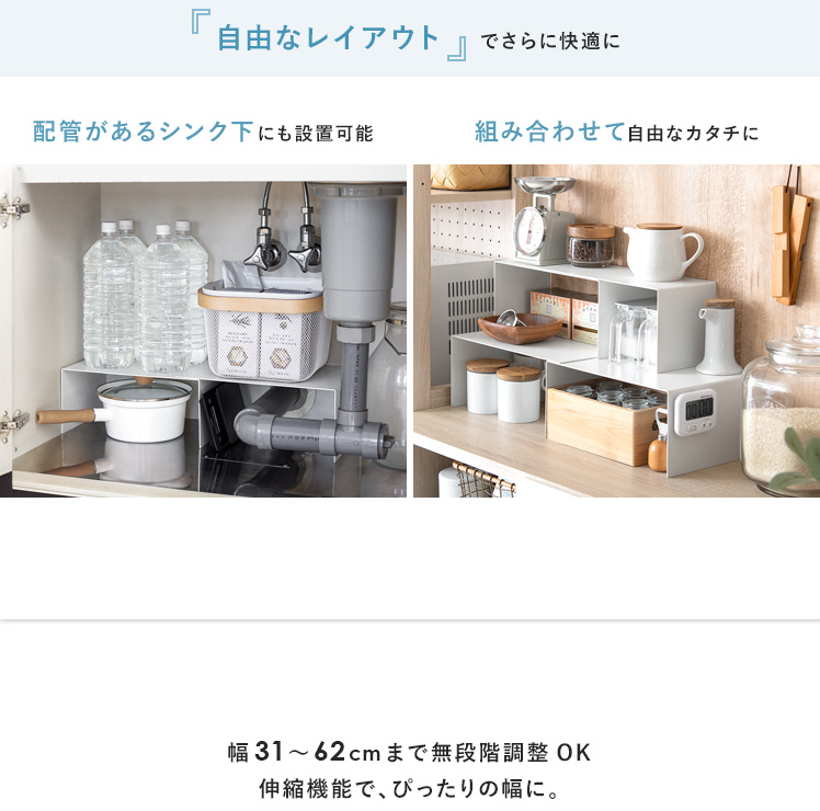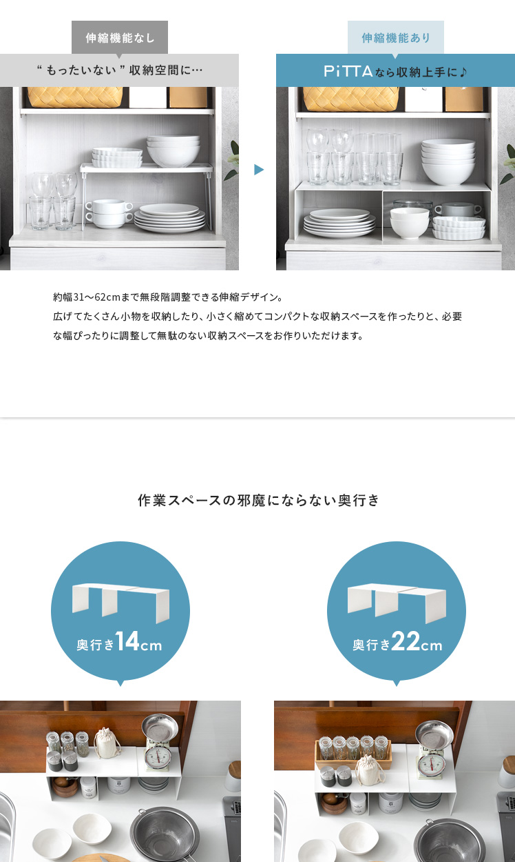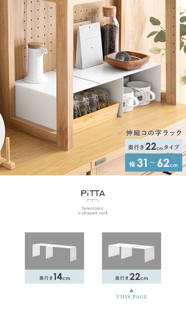 [幅31〜62] 伸縮コの字ラック PiTTA 〔奥行き22cmタイプ〕