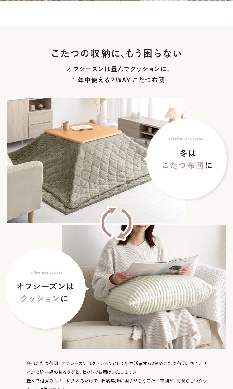 関連カテゴリ: こたつ > こたつ布団セット | こたつ > こたつ布団 > 正方形 こたつ布団 | こたつ > こたつ敷き布団 | インテリア雑貨・日用品 > クッション
