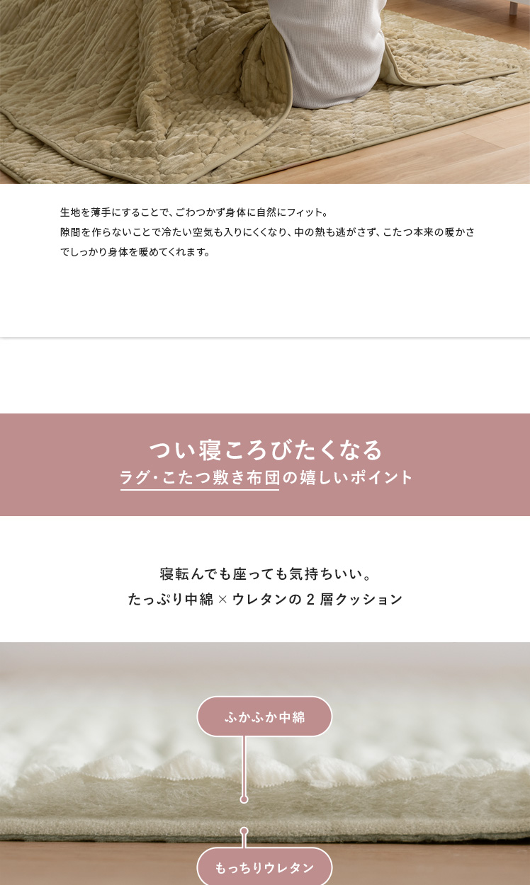 ※クッションになるのはこたつ布団のみとなります。