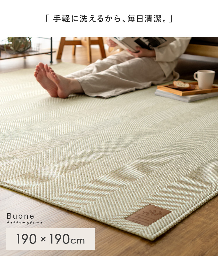 [190×190/正方形] 洗えるへリンボーンラグBuone〔ボーナ〕