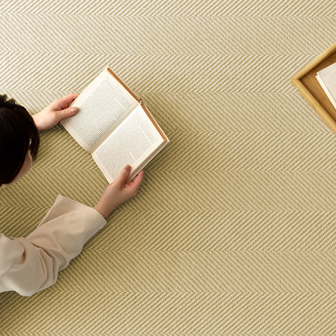 短い毛足はさらりとやわらかい肌触り。思わず寝転がってしまいたくなる、心地良くくつろげるお部屋をおつくりします。